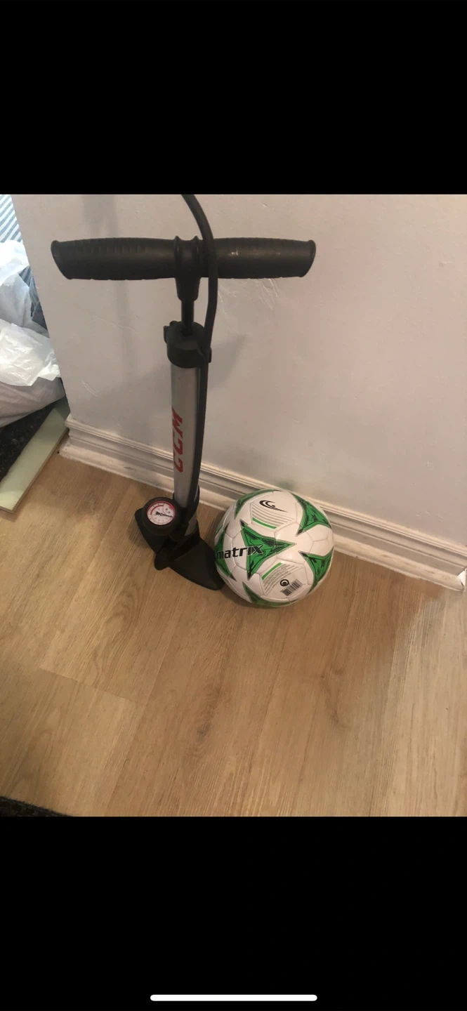 This CCM floor pump has a built-in gauge for accurate tire pressure readings. It's designed to work with Schrader and Presta valves. You can easily check and adjust your bike tires' pressure for a better ride!
