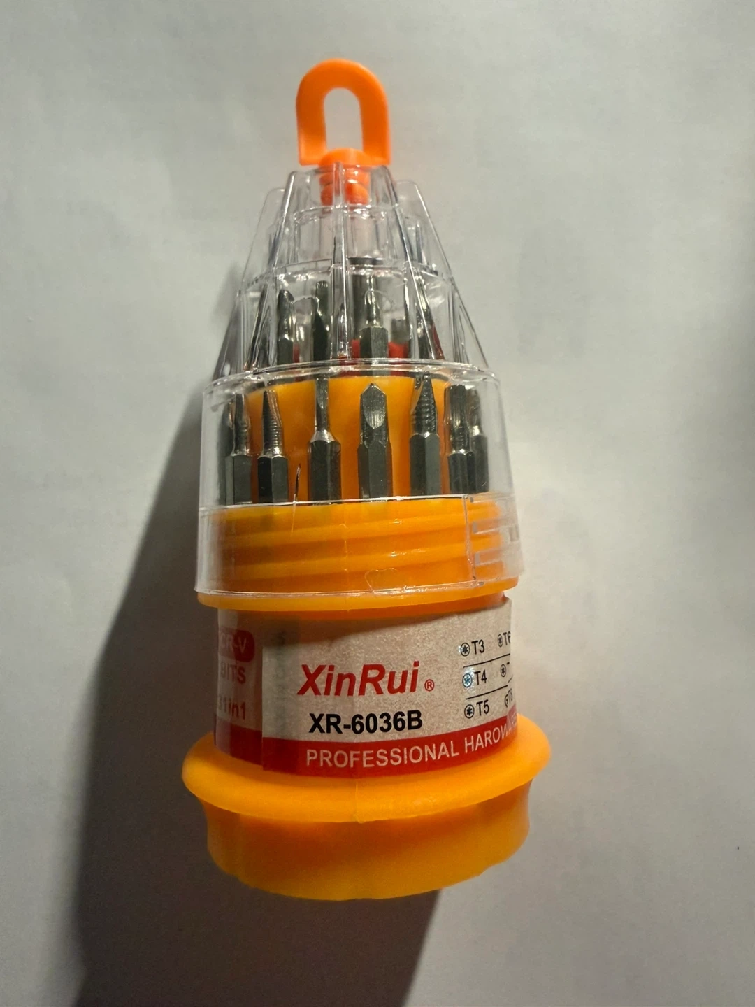 This XinRui 31-in-1 screwdriver set includes a variety of bits for different repair needs. It's a professional hardware tool for precision work. The bits are made of CR-V.