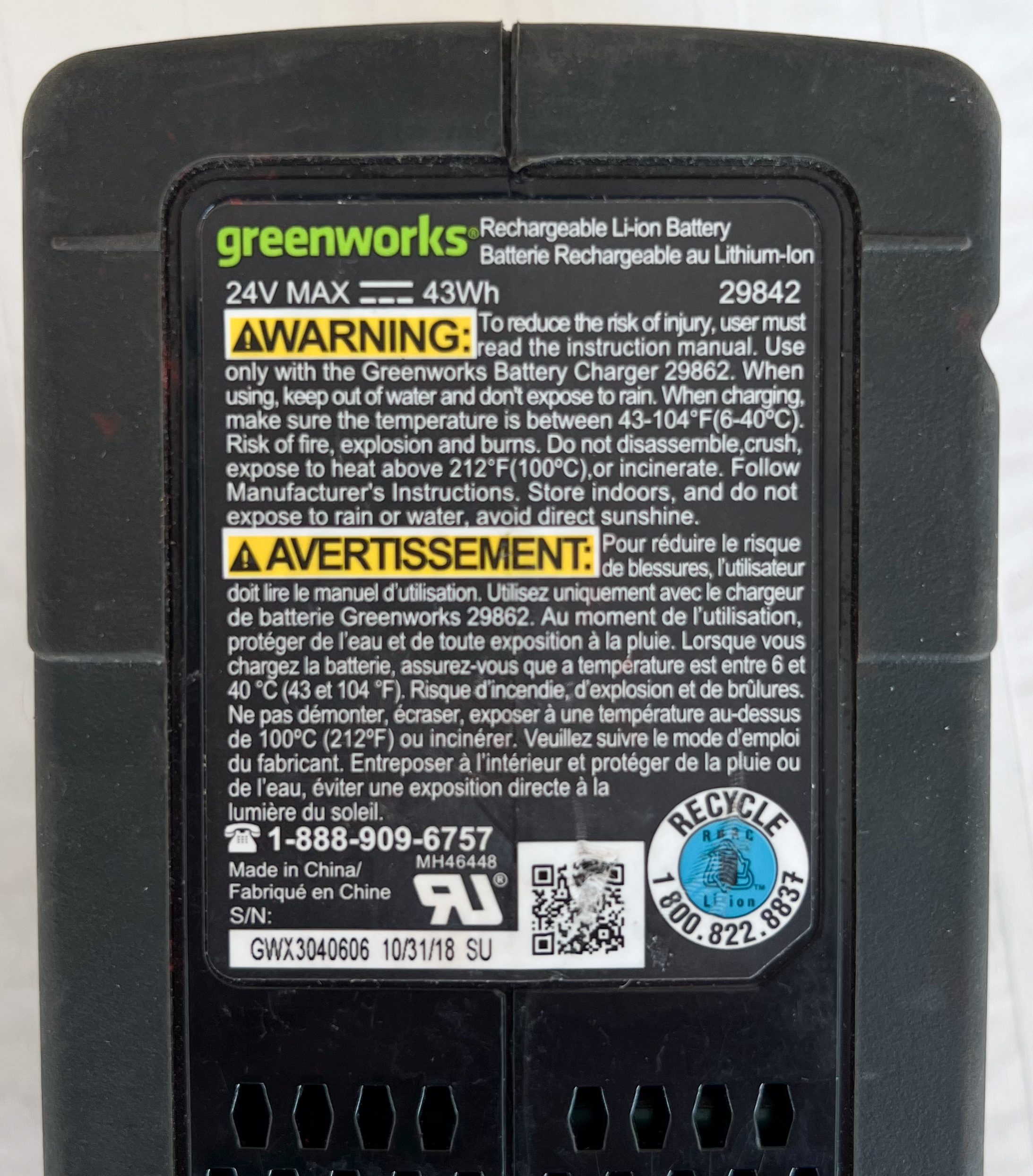 I'm selling a Greenworks G24 24V 2Ah Li-Ion Battery (Model 29842).