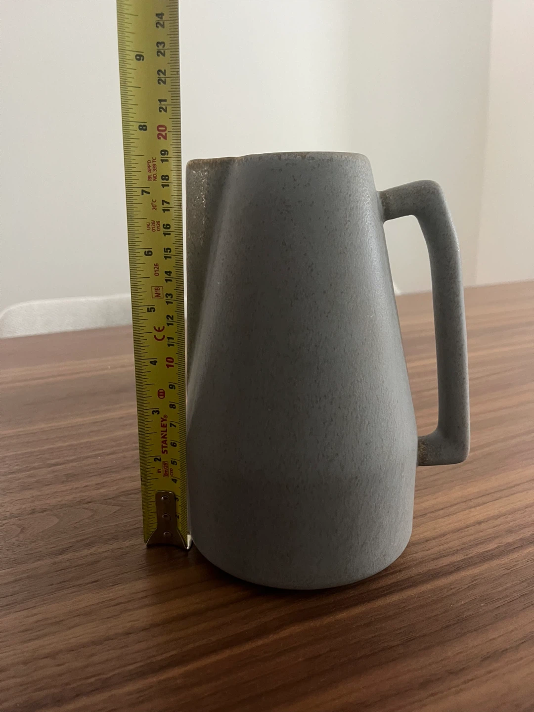 Selling a lovely grey ceramic vase! It's in great shape and would look perfect on any table. It measures approximately 23 cm tall.