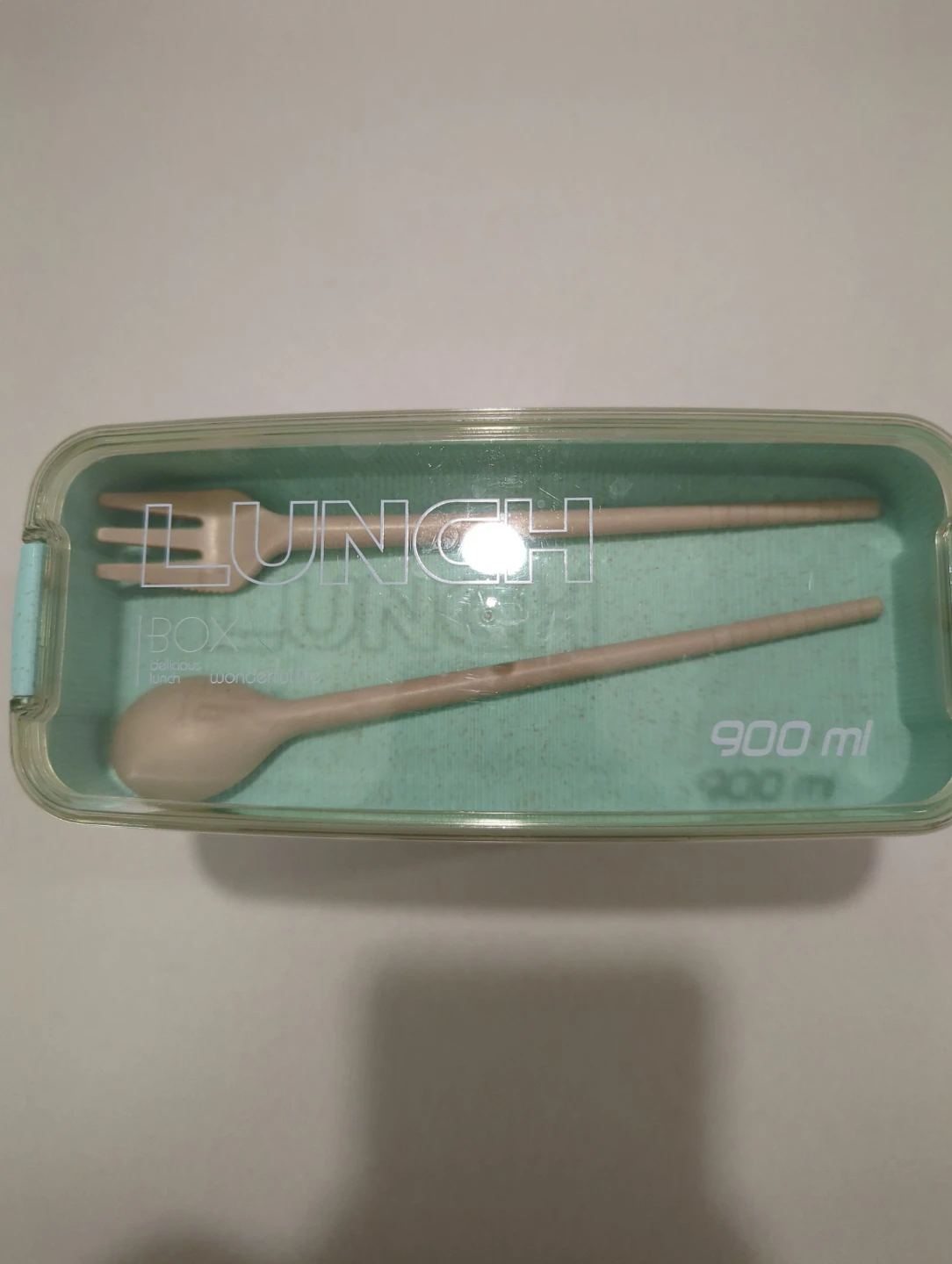 lunch box that comes with a fork, spoon and chopsticks. It's a nice size at 900ml with a divider, perfect for taking your lunch to work or school.