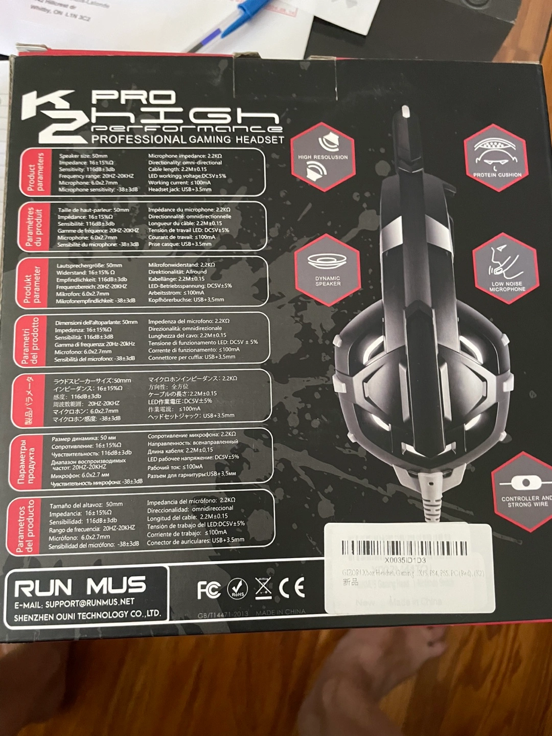 Gaming headset with noise cancelling microphone and separate volume controller. Protein cushions for comfort. Dynamic speaker. High resolution. Compatible with PC, Laptop, iOS, Android devices, Xbox, PS, Nintendo, and more.