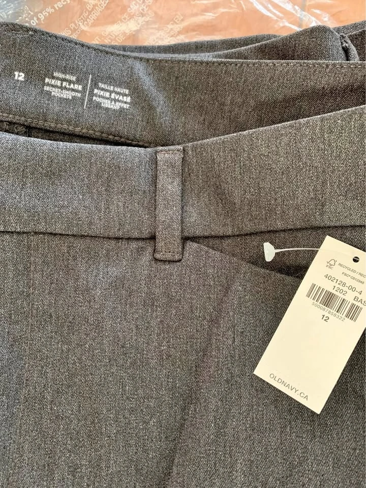 Pixie flare high rise dress pants with secret smooth pockets. Dark charcoal grey size 12. New with tags, never worn. Missed return window. Pick up in Belmont.