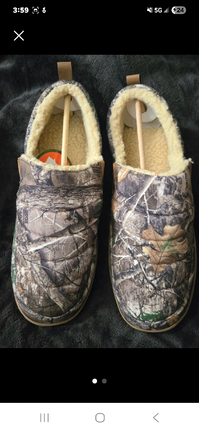 1000+Cozy Ozark Trail slippers in a camouflage pattern, size 9-10. These are perfect for keeping your feet warm and comfy around the house. The soles have good traction, so you won't slip. They're in great condition and ready for a new home!
