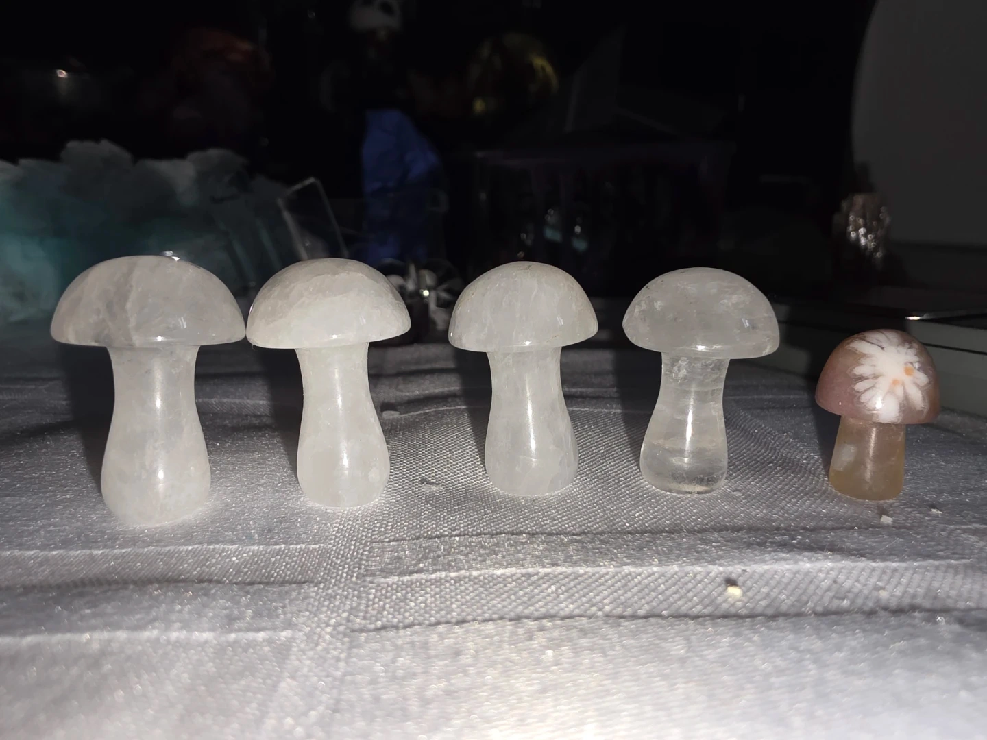 Set of 5 Crystal Mushroom Figurines