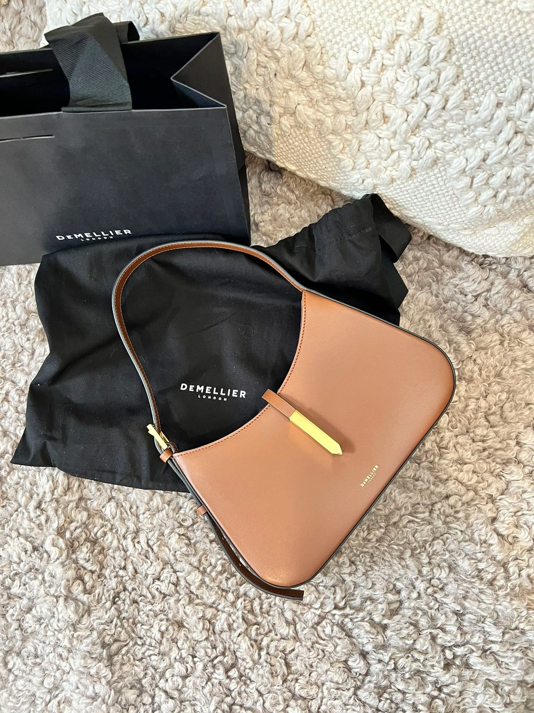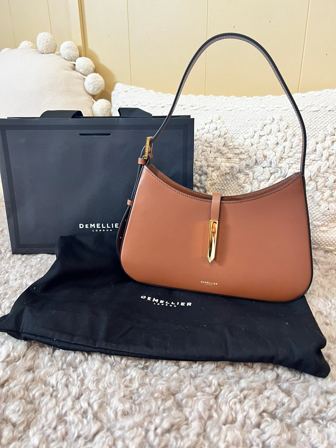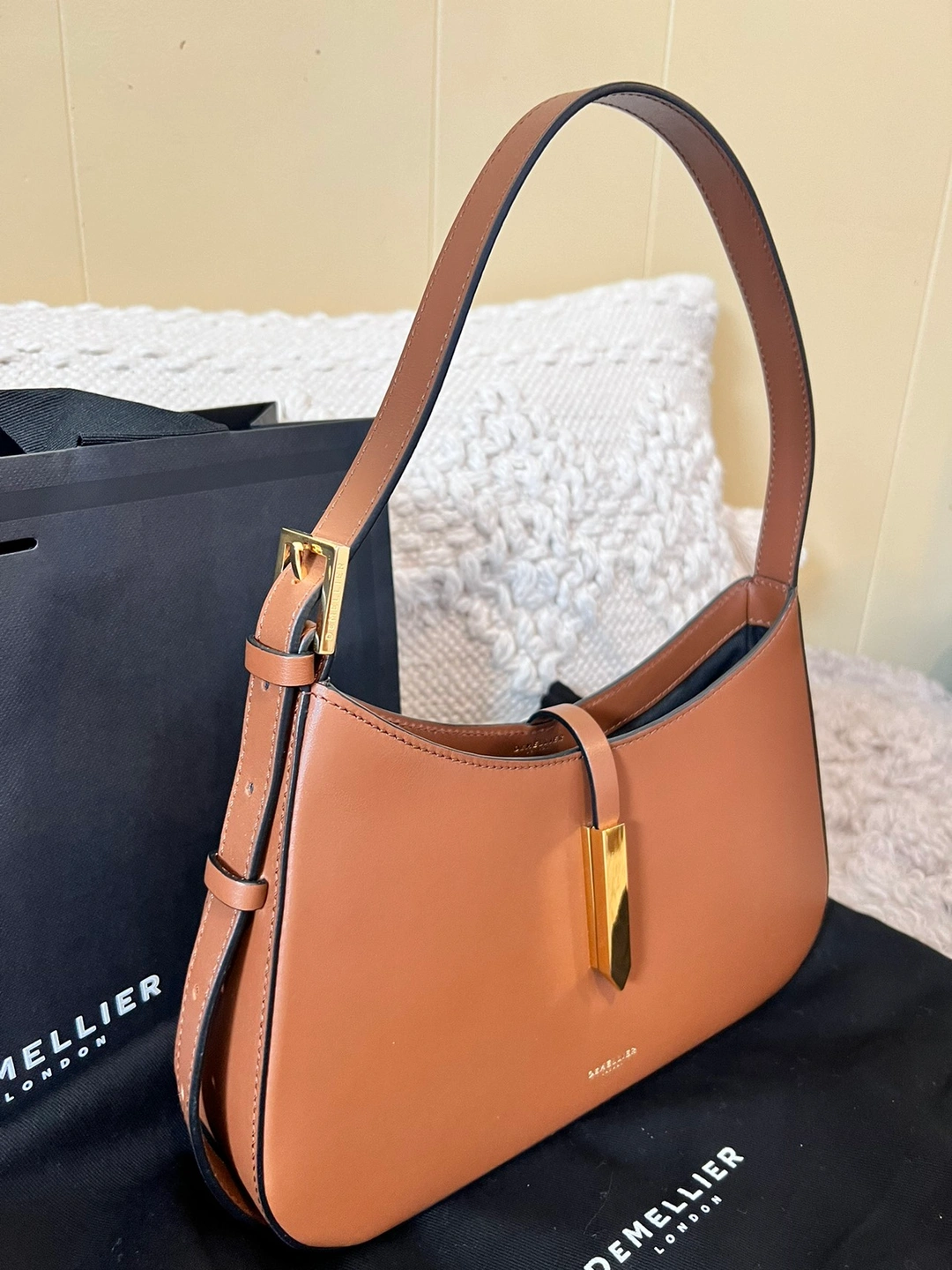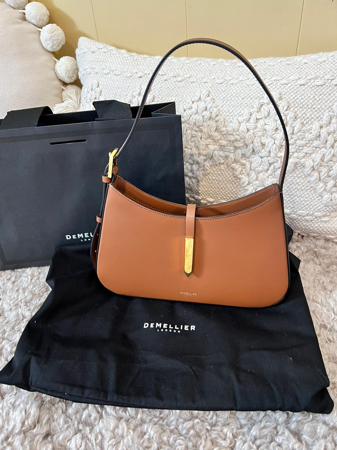 This is the gorgeous demellier Tokyo handbag in a tan smooth cowhide leather. This piece looks brand new and has only been used a couple of times.
