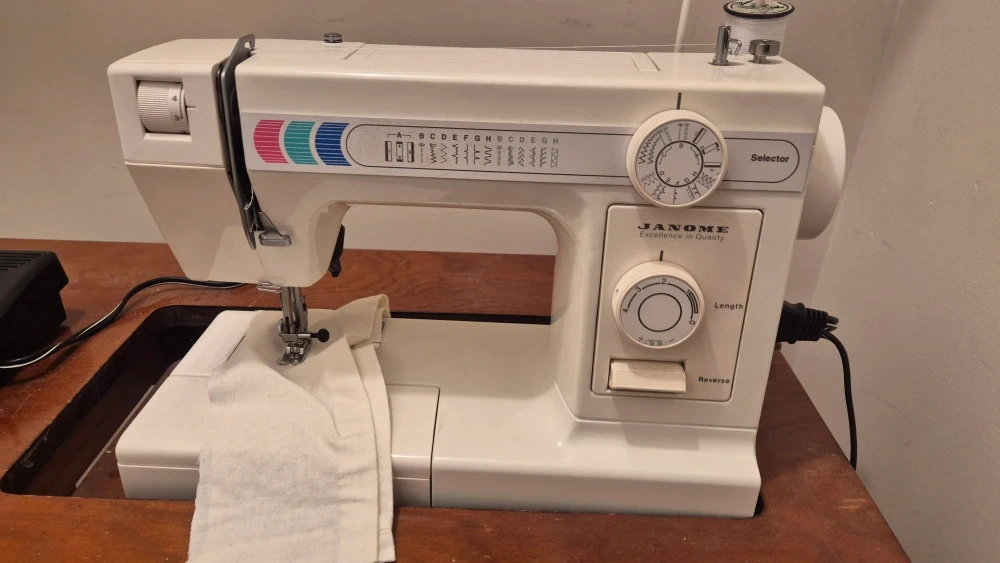 Selling a Janome sewing machine, model 344 LX. It's in good working condition and ready for your sewing projects. Table is in good condition with vintage look.
