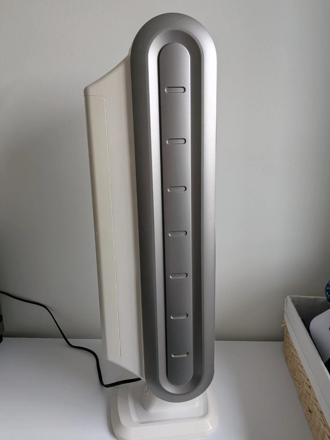 This is a Fellowes ventilator and air purifier. It features a sleek white and silver design with a digital display. It's a great unit for improving air quality in your home! Will need new filter, but if you want to use it only as a ventilator no need for it!