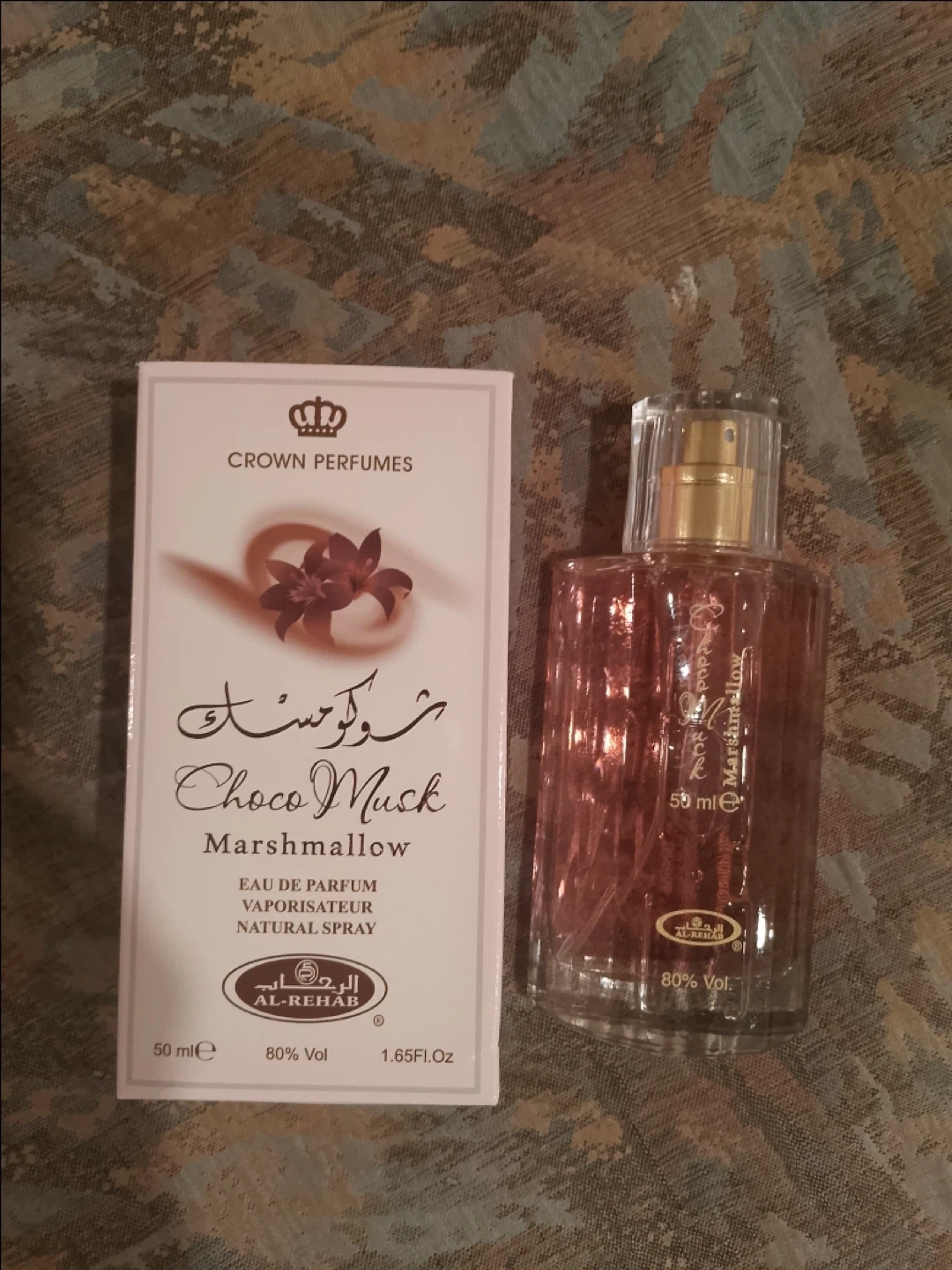 This is Al-Rehab Choco Musk Marshmallow Eau de Parfum. It's a natural spray with 80% volume. 50 ml bottle.
