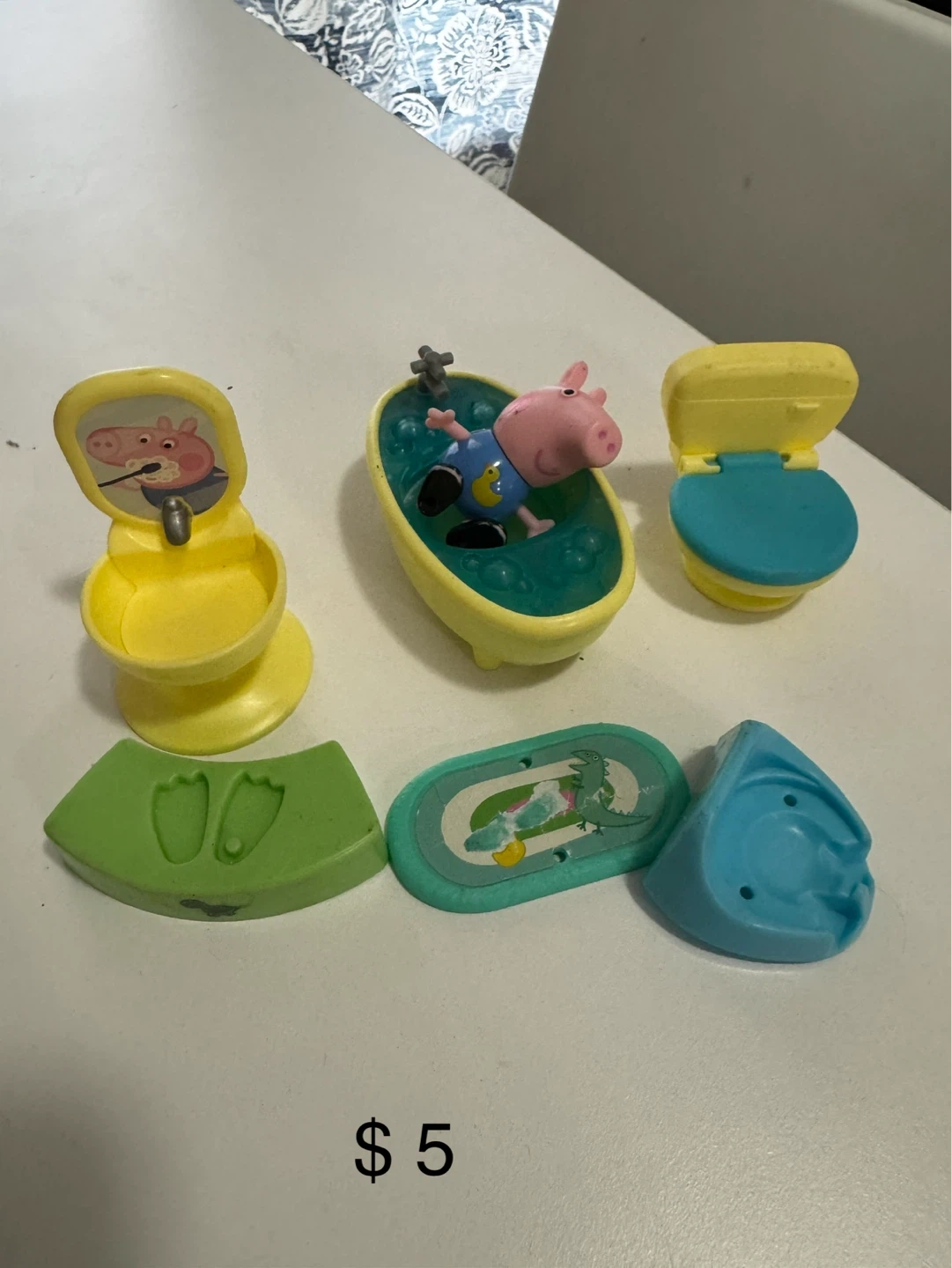 This Peppa Pig play set includes Peppa in the bathtub, a toilet, and other accessories. It's made of durable plastic for hours of fun. Great for little ones who love Peppa Pig!