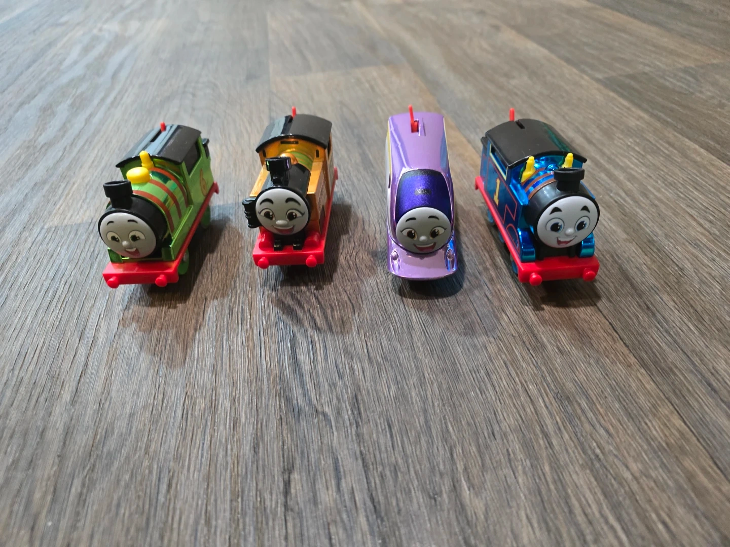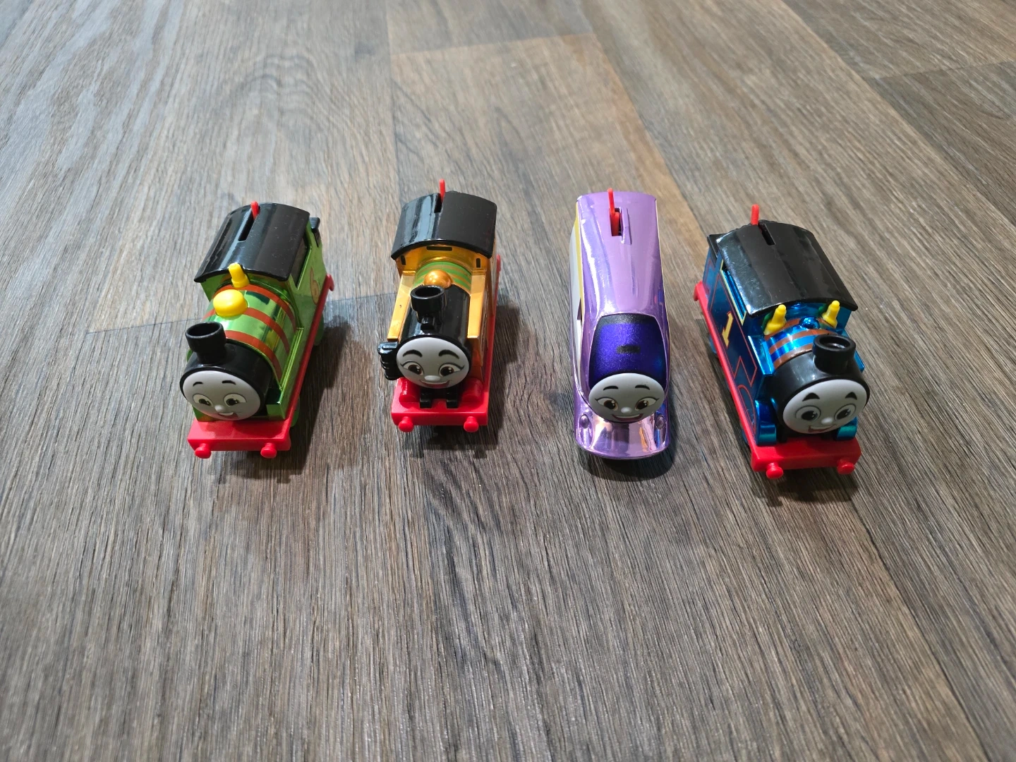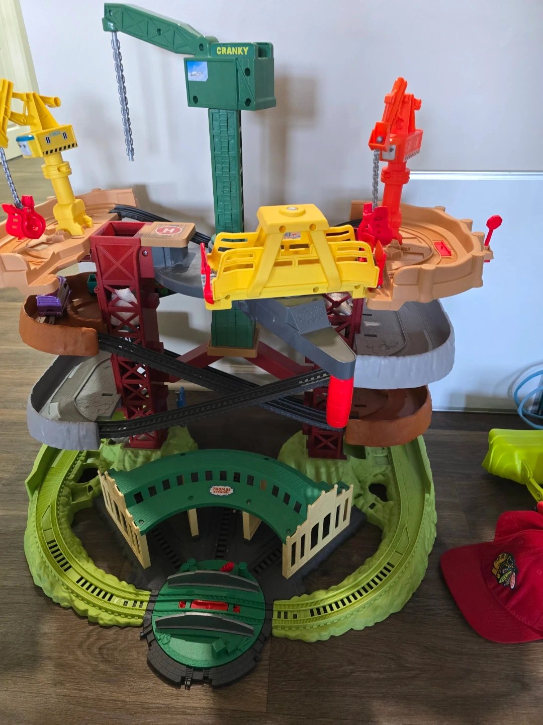 This bundle includes a large Trackmaster train set with multiple cranes and tracks, plus four character trains. The trains are Thomas, Percy, Nia, and Rebecca. Trackmaster trains require batteries and are designed for use on Trackmaster tracks.