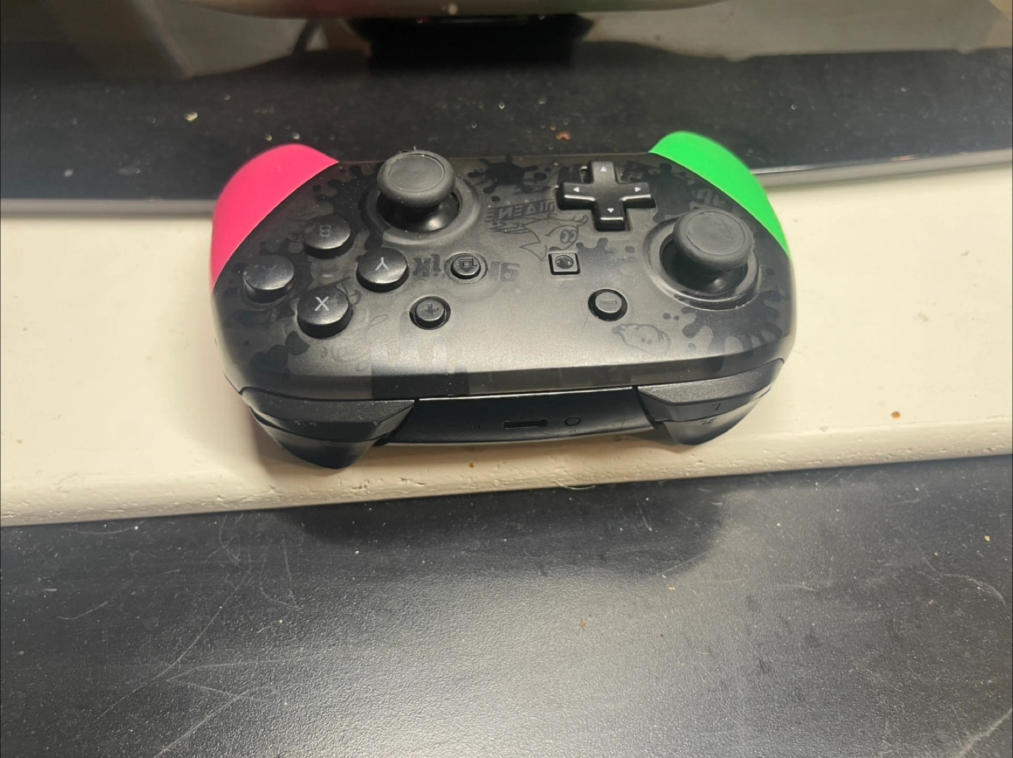 Selling a used Nintendo Switch Pro Controller in the Splatoon 3 design! It's in good condition and ready for a new home. Perfect for gaming on your Nintendo Switch