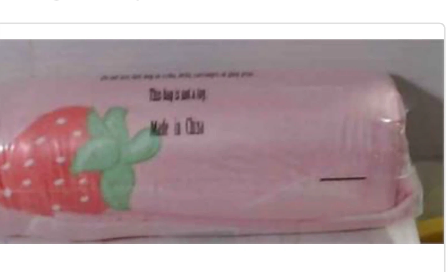 Super soft pink blanket with a cute strawberry pattern. It's made from a plush material.