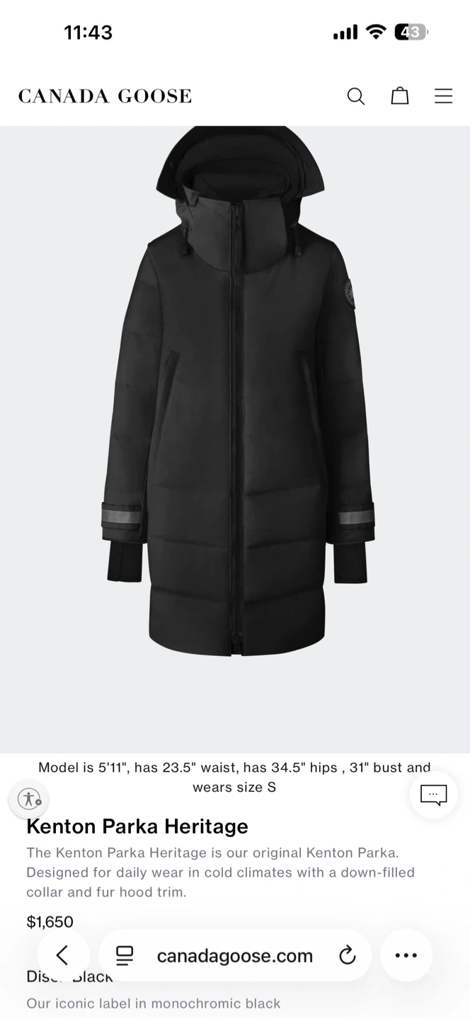 Selling a Canada Goose Kenton Parka Heritage in black. Designed for daily wear in cold climates with a down-filled collar and fur hood trim. Originally bought for $1,650