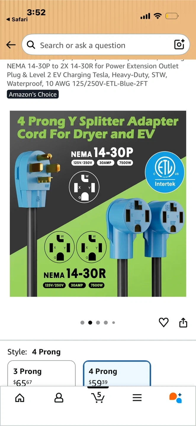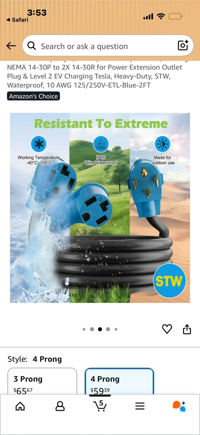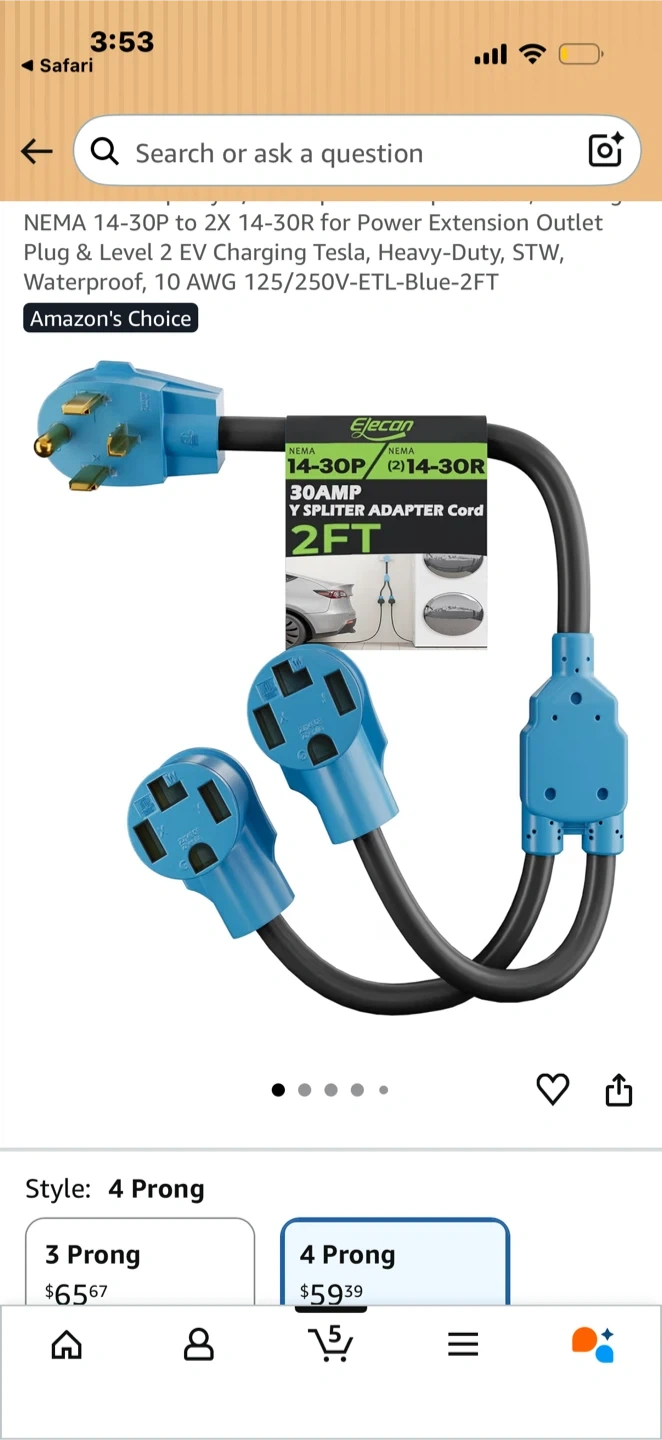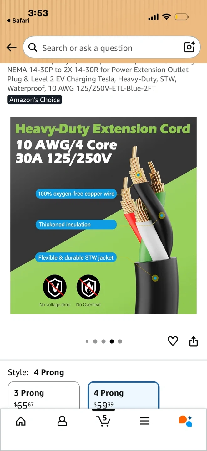 This is a NEMA 14-30P to 2x 14-30R Y splitter adapter cord. It's 2 feet long and made with 10 AWG STW wire. This cord is heavy-duty and waterproof. It's designed for power extension and EV charging.