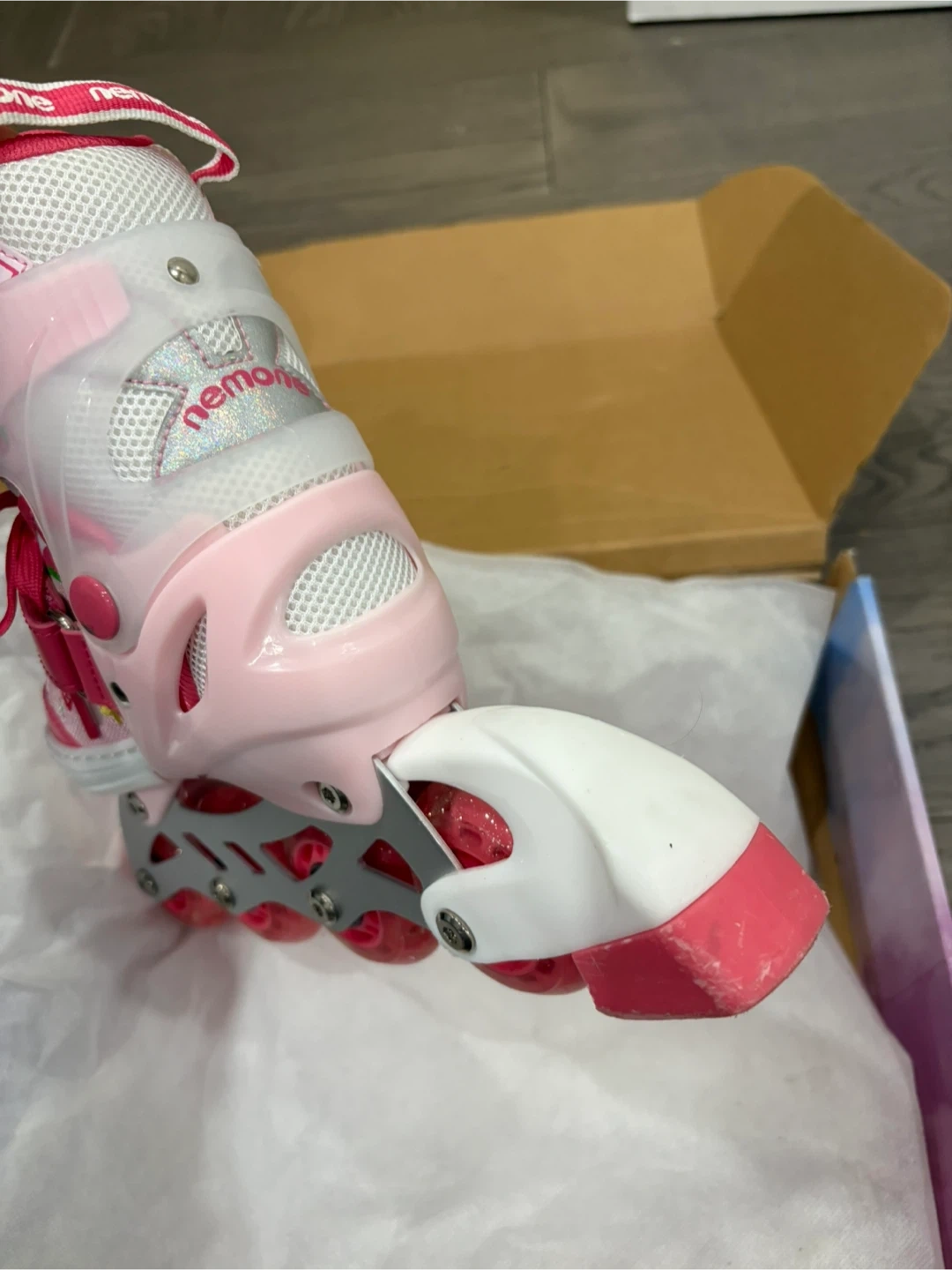 Selling a pair of Nemone roller skates for kids in size small (US 10C-13C). They are in good condition and come with the original box. Perfect for your little one to learn how to skate!