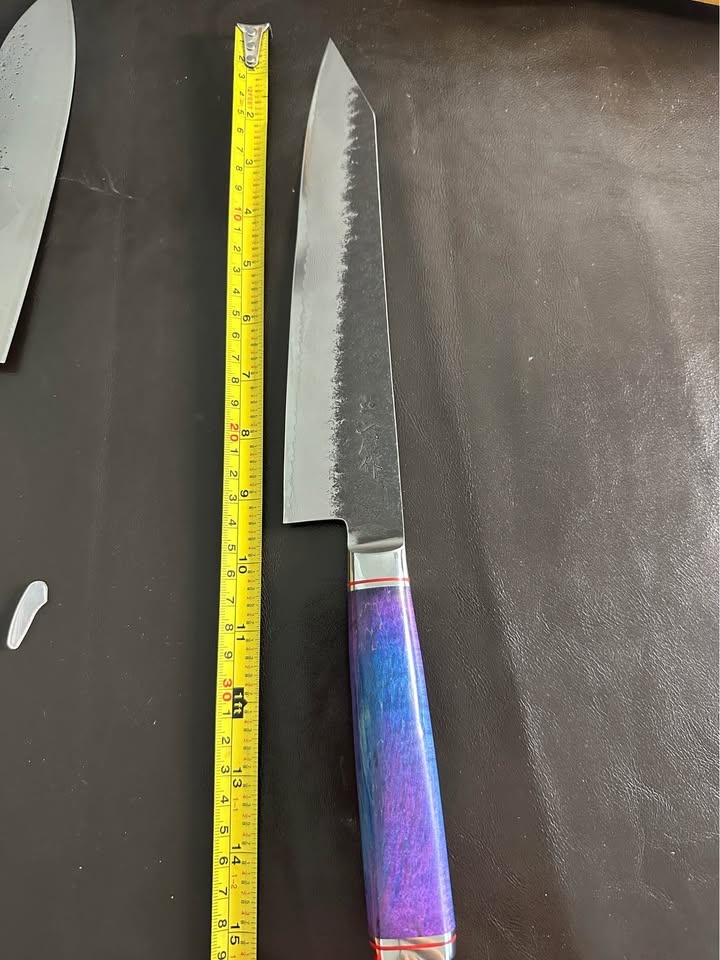 Japanese-style kiritsuke knife in great condition. Sharp double blade, well-balanced, and very comfortable to use. Works well for vegetables, meat, and everyday cooking. Clean and well maintained. No chips or damage. Simple, elegant Japanese design. Suitable for home cooks or kitchen professionals. Local pickup in Richmond. Let me know if you're interested!