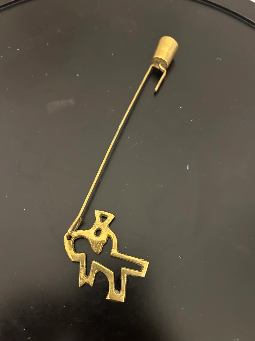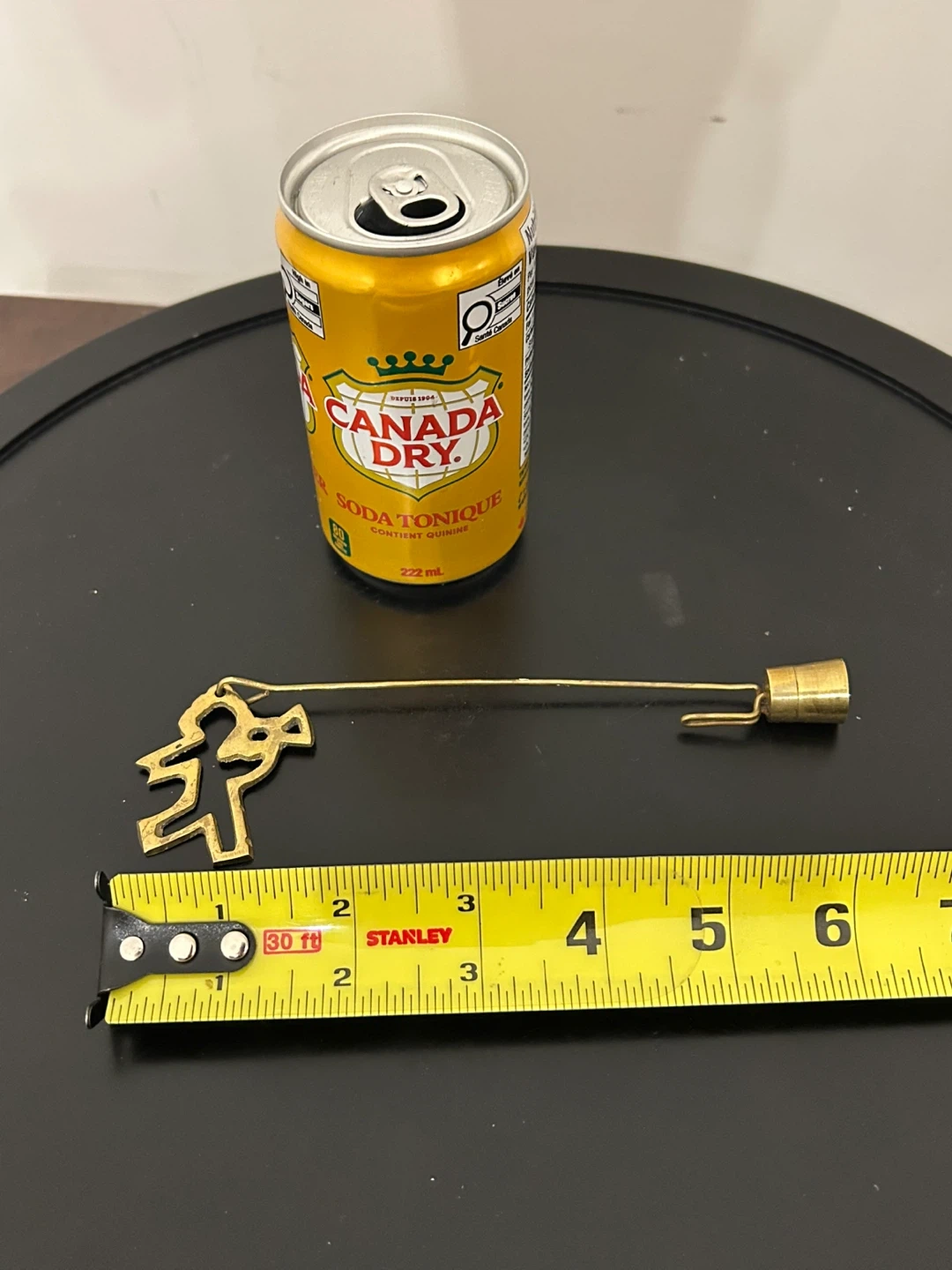 A unique vintage brass candle snuffer featuring a charming stylized figural handle and long slender arm. The design has a wonderful mid-century modern feel with clean lines and a minimalist silhouette, while the solid brass construction gives it warmth and character.