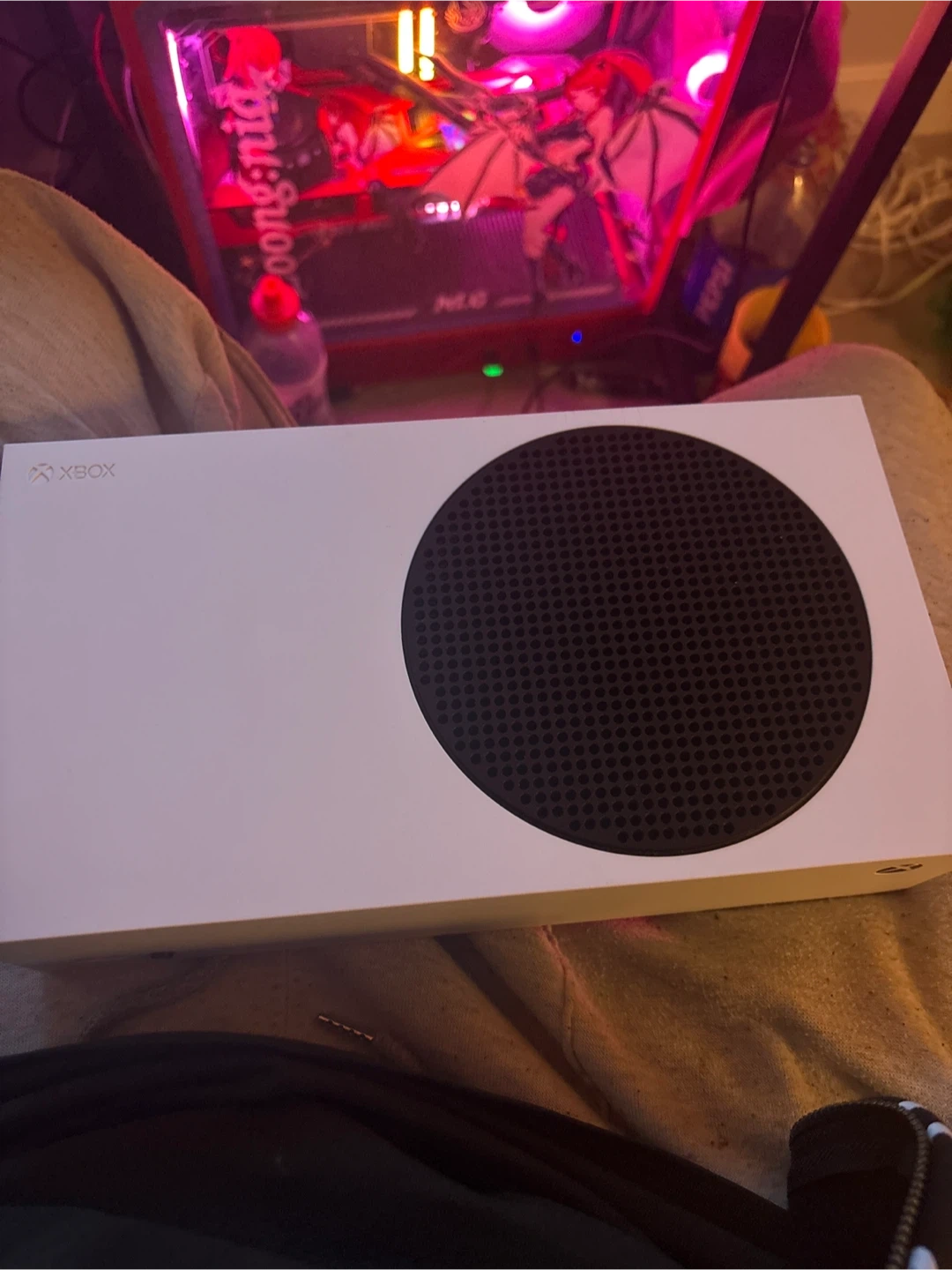 White Xbox Series S console. It's compact and ready for gaming. A great option for a secondary console or a starter gaming setup.