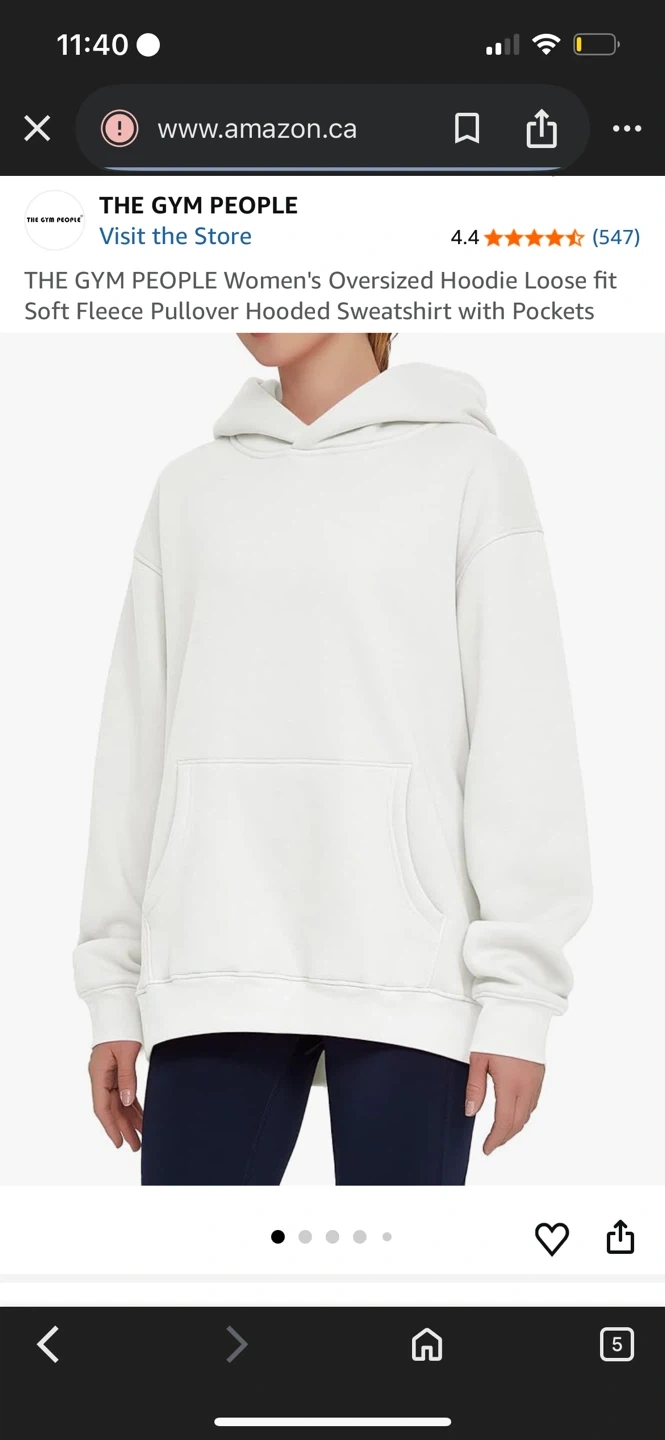 It's a white, oversized fit hoodie made by THE GYM PEOPLE. It's a soft fleece pullover with a hood and pockets. Perfect for casual wear or lounging!