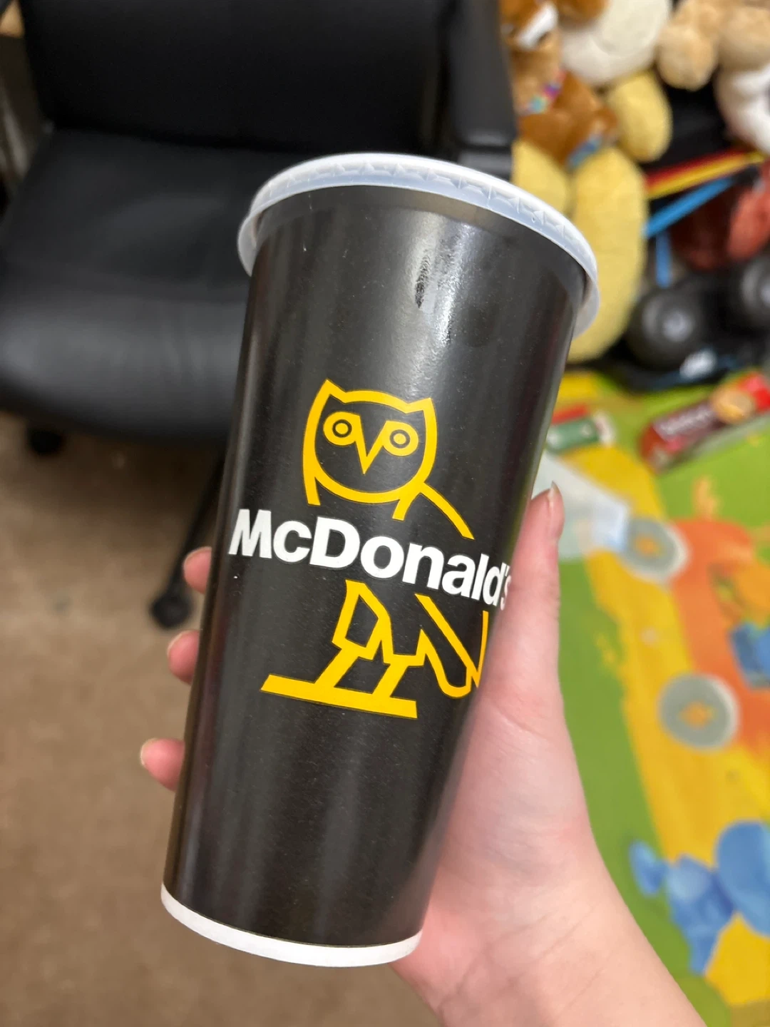Buy & SellMcDonald's x OVO Owl CupMcDonald's x OVO Owl Cup$18This is a McDonald's cup featuring the OVO owl logo. It's black with yellow graphics. Perfect for collecting or everyday use!WHERE TO MEETCheck LocationView MapSELLERKristenLake City50 reviews0 chats·0 favorites·35 viewsSEND CHAT TO SELLERHi Kristen! I’m interested in your listing.Hi Kristen! I’m interested in your listing.Get the Karrot app to chatSign In to chat
