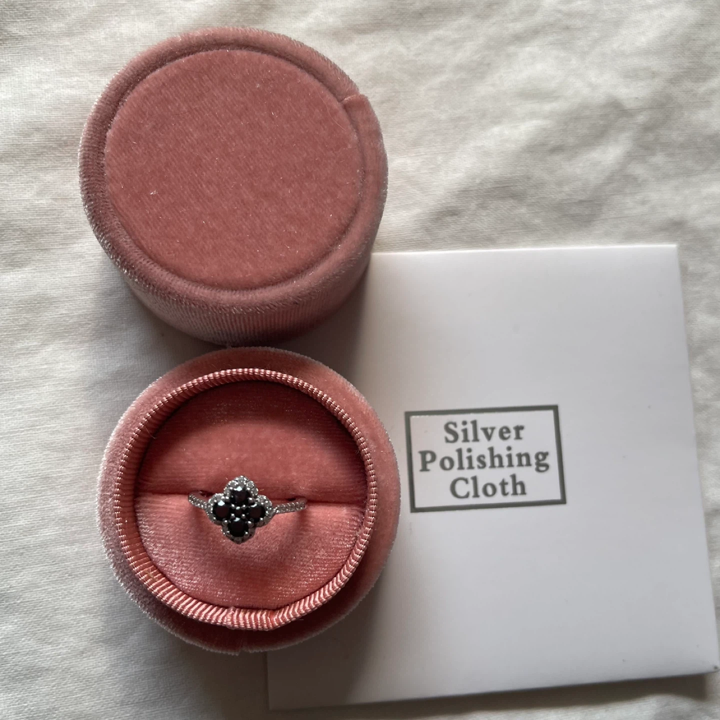 Brand new This stunning ring features a captivating black moissanite quatrefoil centrepiece surrounded by smaller moissanite pavé stone accents. Has tons of sparkle in person under direct lighting and is a jewelry price great for adding a touch of sophistication to any outfit. Materials: 925 solid sterling silver, Moissanite All stones test positive on a diamond tester 💎 Includes a box, polish cloth and jewelry certificate Size 4 Tags: jared people’s estate vintage fine jewelry ruby emerald Victorian Cartier Edwardian gold Swarovski mejuri David yurman pandora Michael hill Jenny bird Tiffany Thomas sabo Kay van cleef Roberto coin antique bvlgari Alhambra bluboho