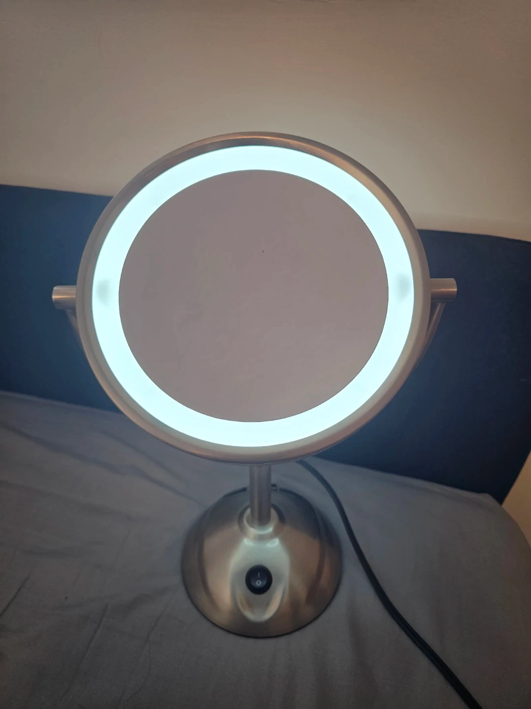 Stylish double-sided makeup mirror with bright LED lighting. Perfect for makeup, skincare, and grooming.