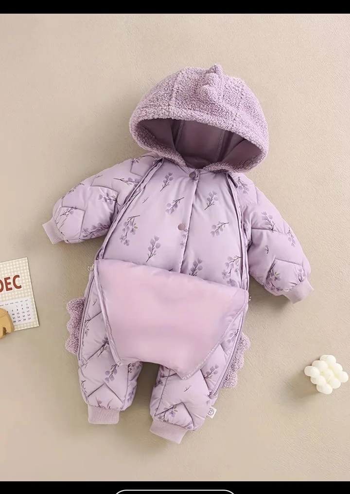 Baby Dinosaur Hooded Snowsuit - Lavender 🥕