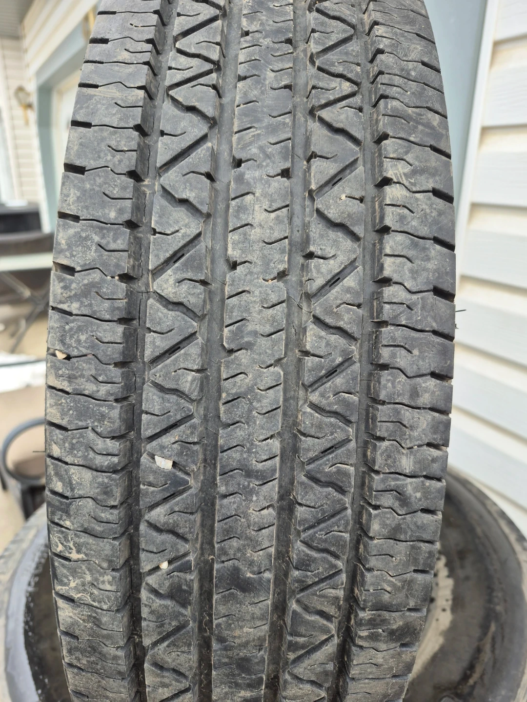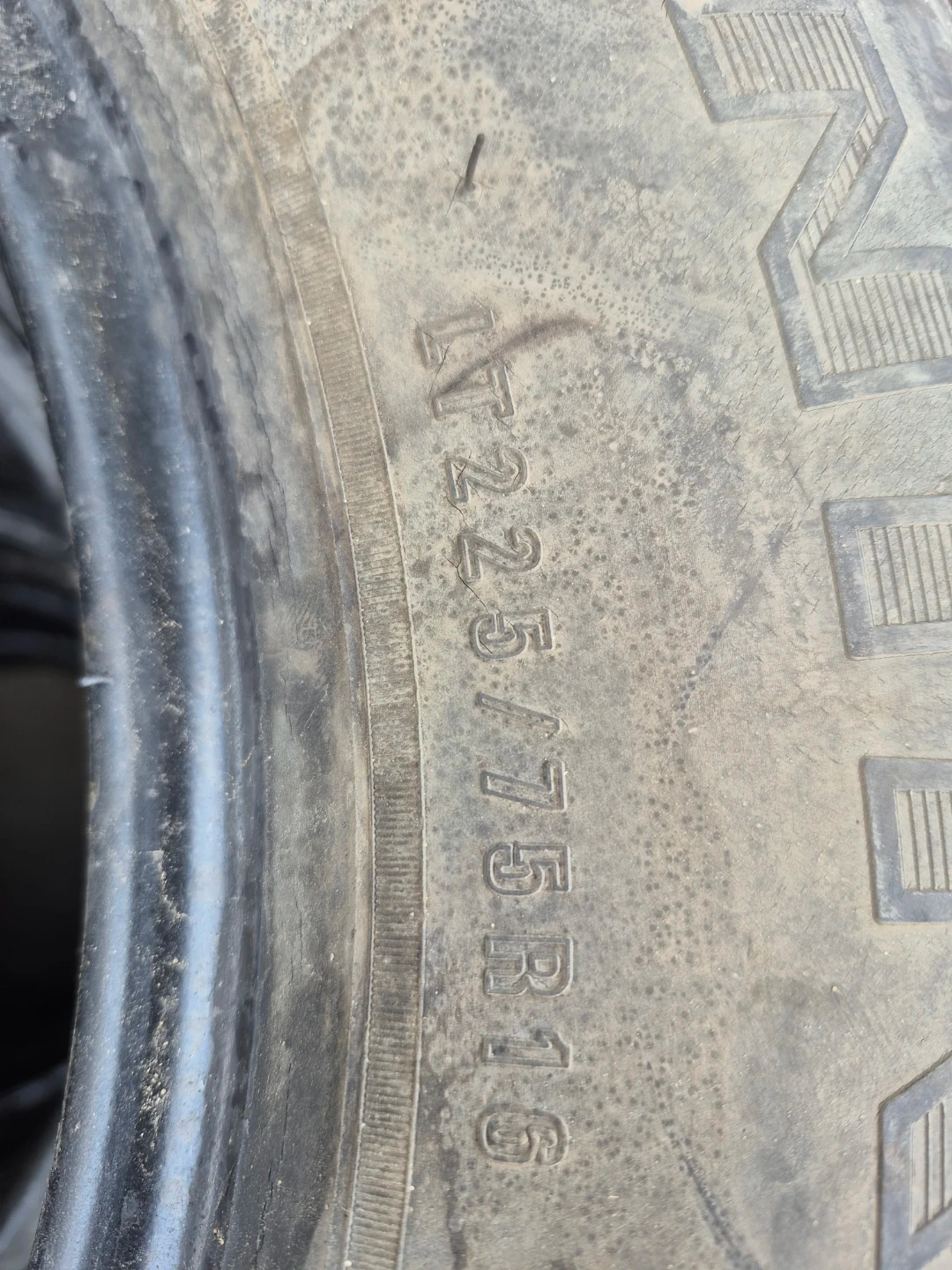LT225/75R16 tires. It's a standard all-season 6 tires with good tread depth remaining. It could be a useful spare or replacement tire for many trucks and SUVs. Weather crack