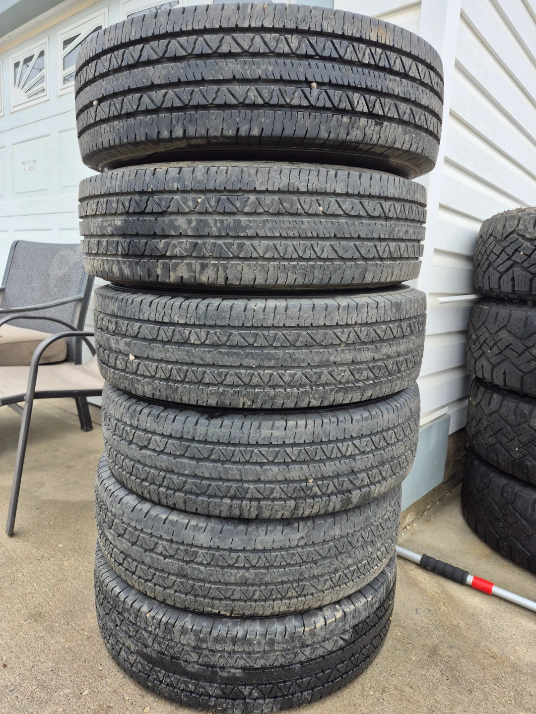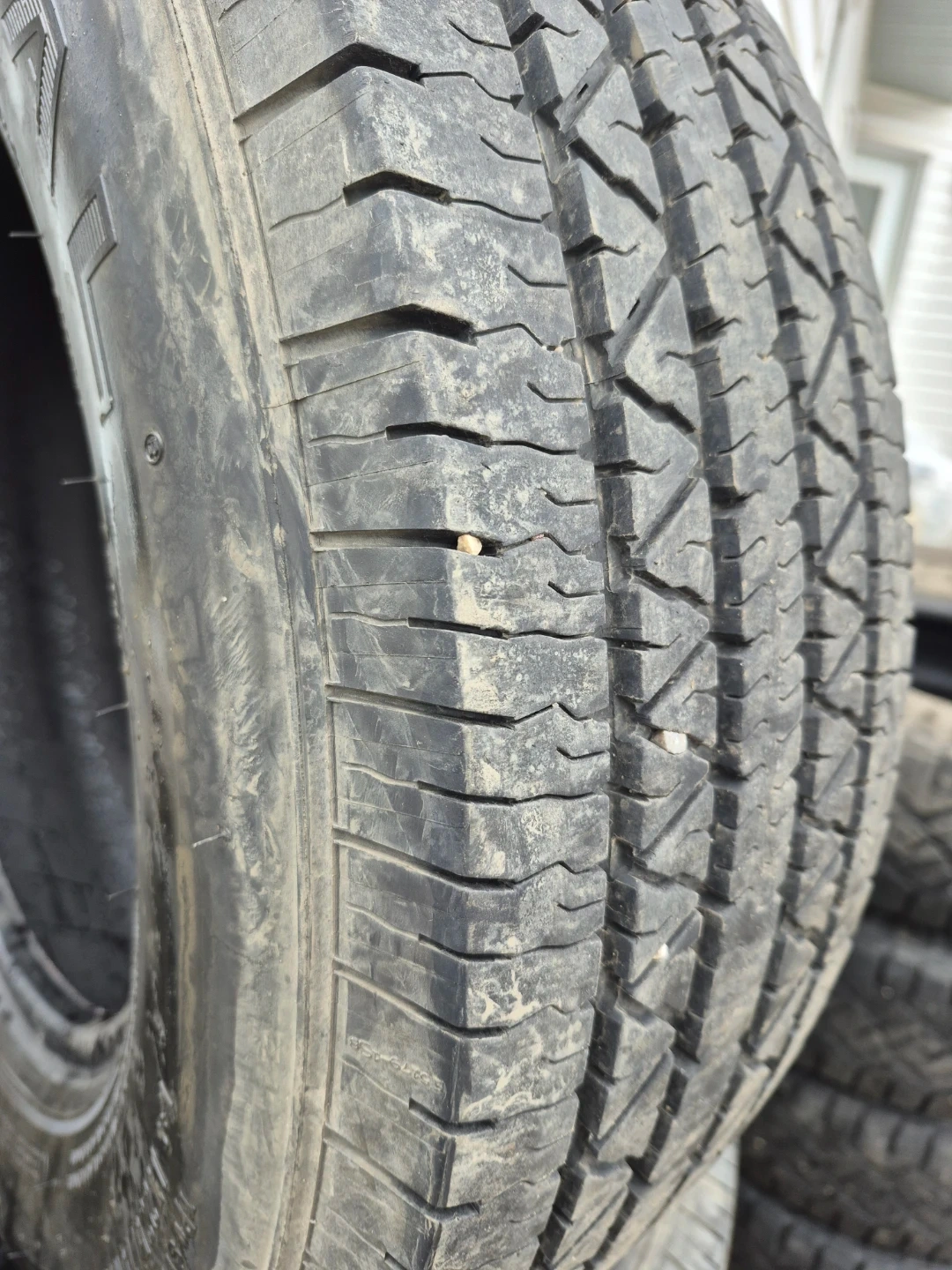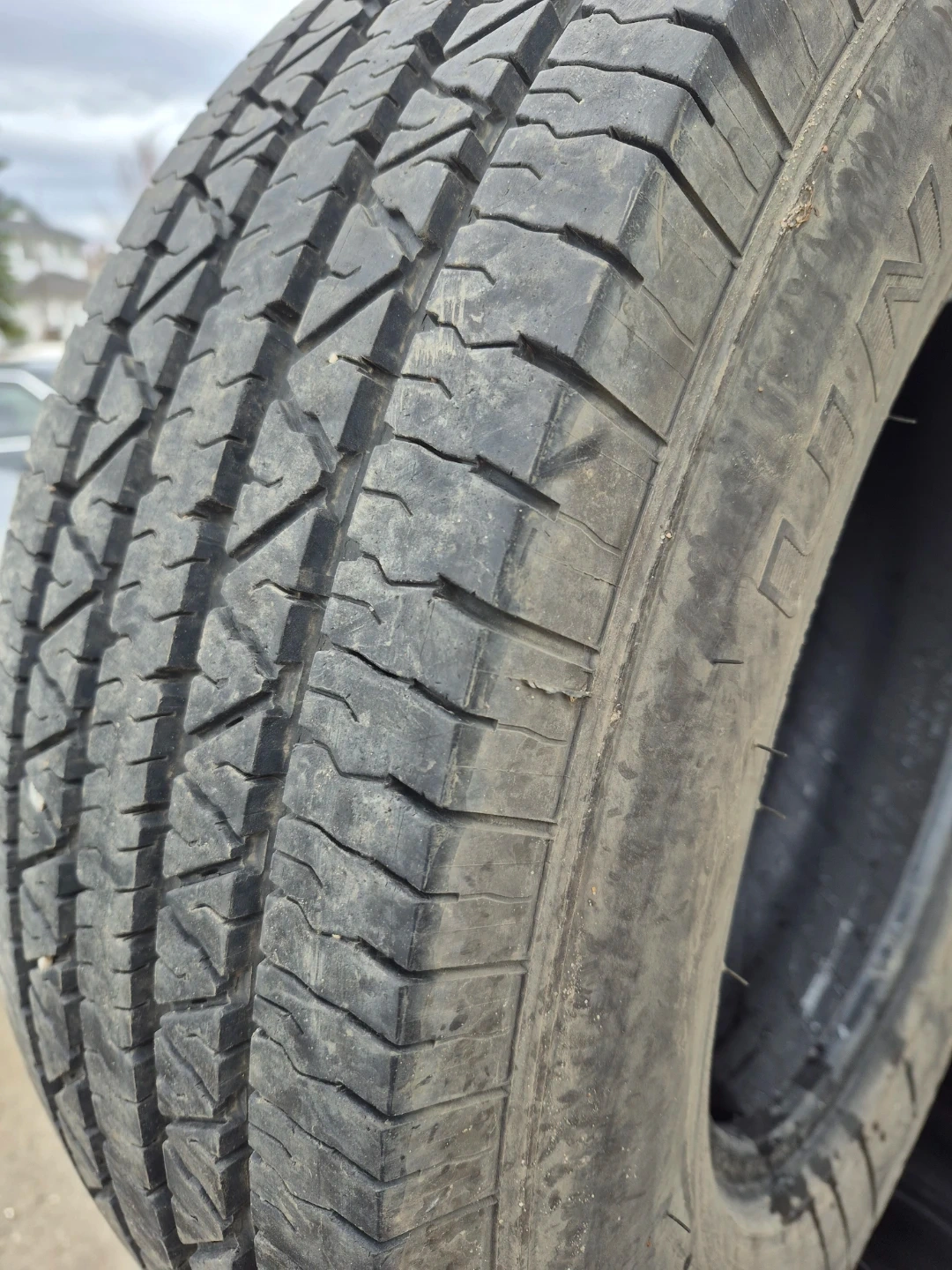 LT225/75R16 tires. It's a standard all-season 6 tires with good tread depth remaining. It could be a useful spare or replacement tire for many trucks and SUVs. Weather crack