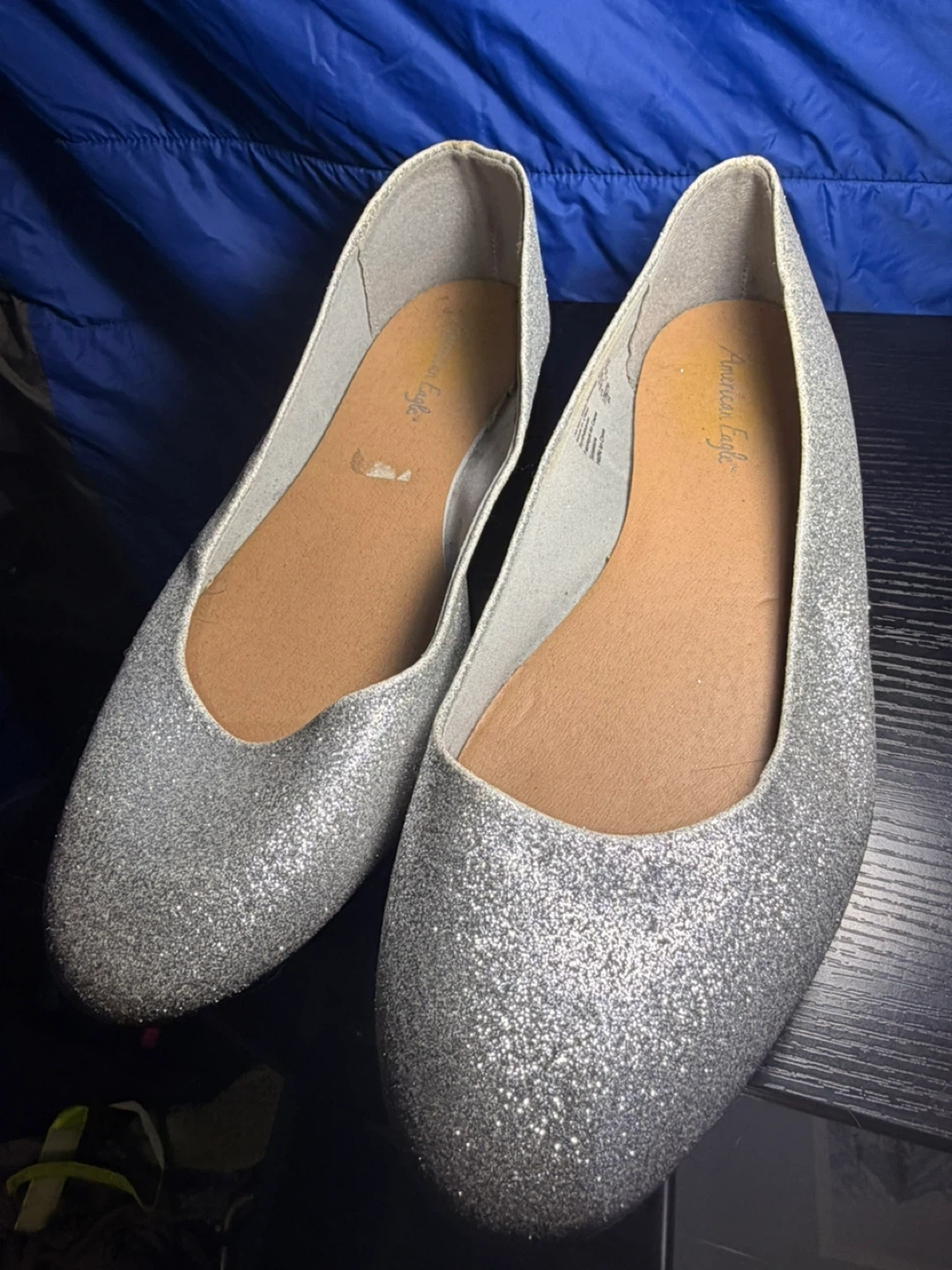Buy & SellAmerican Eagle Silver Glitter Ballet Flats Size 13American Eagle Silver Glitter Ballet Flats Size 13$10Sparkly silver ballet flats from American Eagle. Size 13 US, 45 EUR.ConditionLike newSize13BrandAmerican EagleWHERE TO MEETCheck LocationView MapSELLERverifiedCateMaillardville881 review1 chats·1 favorites·8 viewsSEND CHAT TO SELLERHi Cate! I’m interested in your listing.Hi Cate! I’m interested in your listing.Get the Karrot app to chatSign In to chat