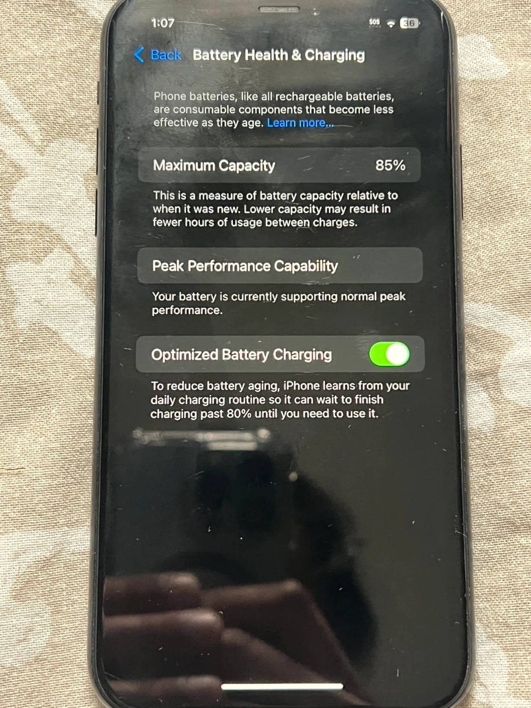 Good condition, everything works great. Some scratches in the screen but not noticeable when using the phone. No cracks or dents. No sim restrictions. Unlocked and reset. Battery health 85%. Case included