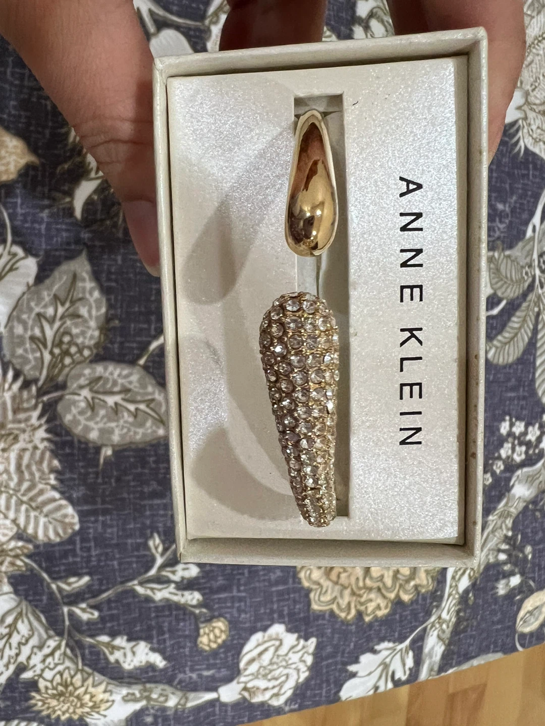 These Anne Klein earrings showcase a gold-tone finish with a pave crystal teardrop design. They come in their original box for safekeeping. Perfect for adding a touch of sparkle to any outfit!