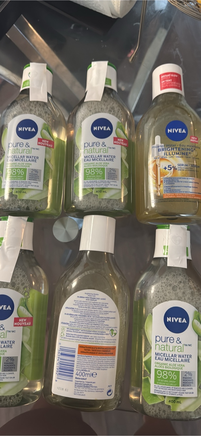 Selling Nivea micellar water in 400mL bottles! These are the Pure & Natural and Brightening Illumine varieties. Perfect for removing makeup and cleansing your skin in one step