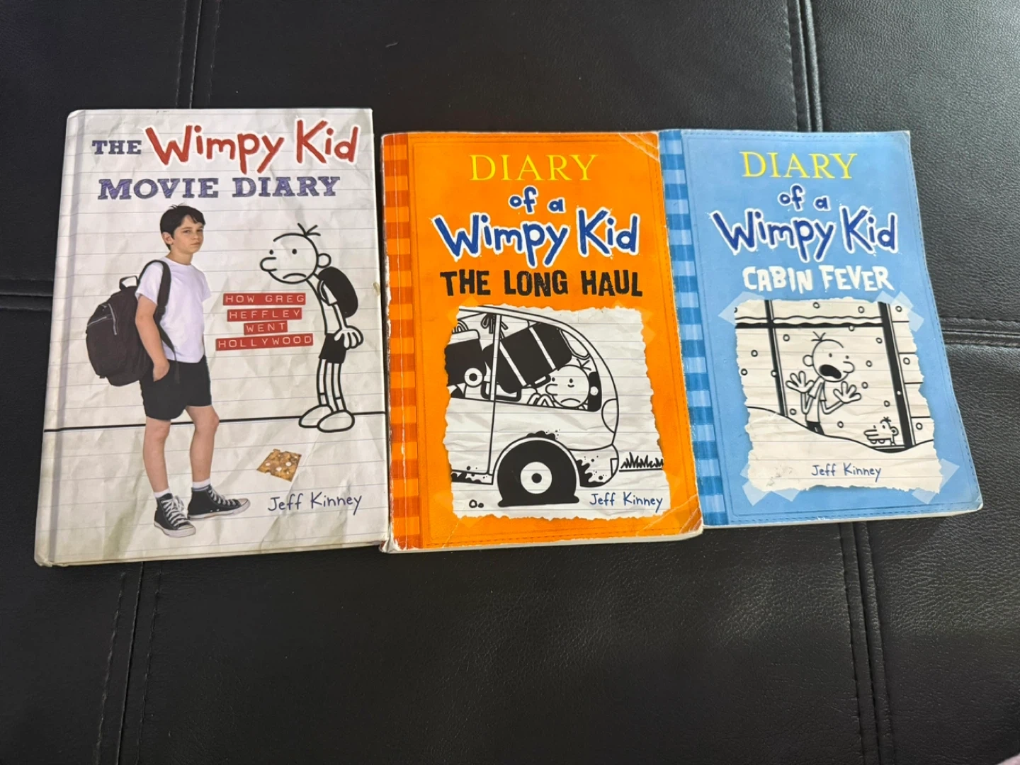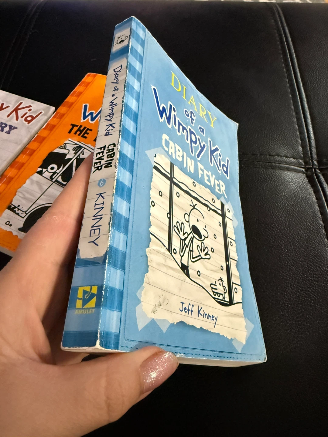 Set of three Diary of a Wimpy Kid books by Jeff Kinney. Includes 'The Movie Diary', 'The Long Haul', and 'Cabin Fever'. These are children's fiction novels. All for $5 🤗