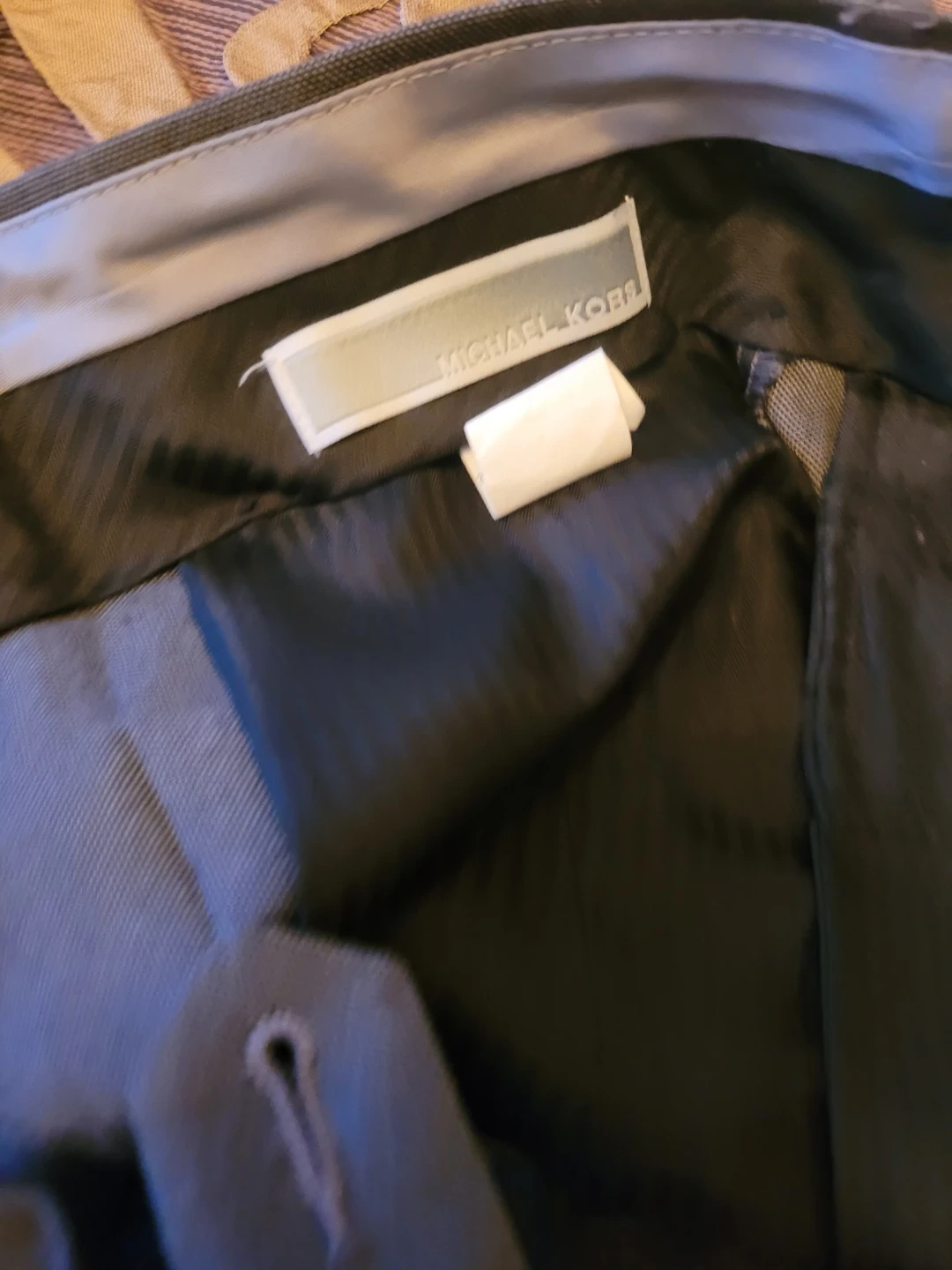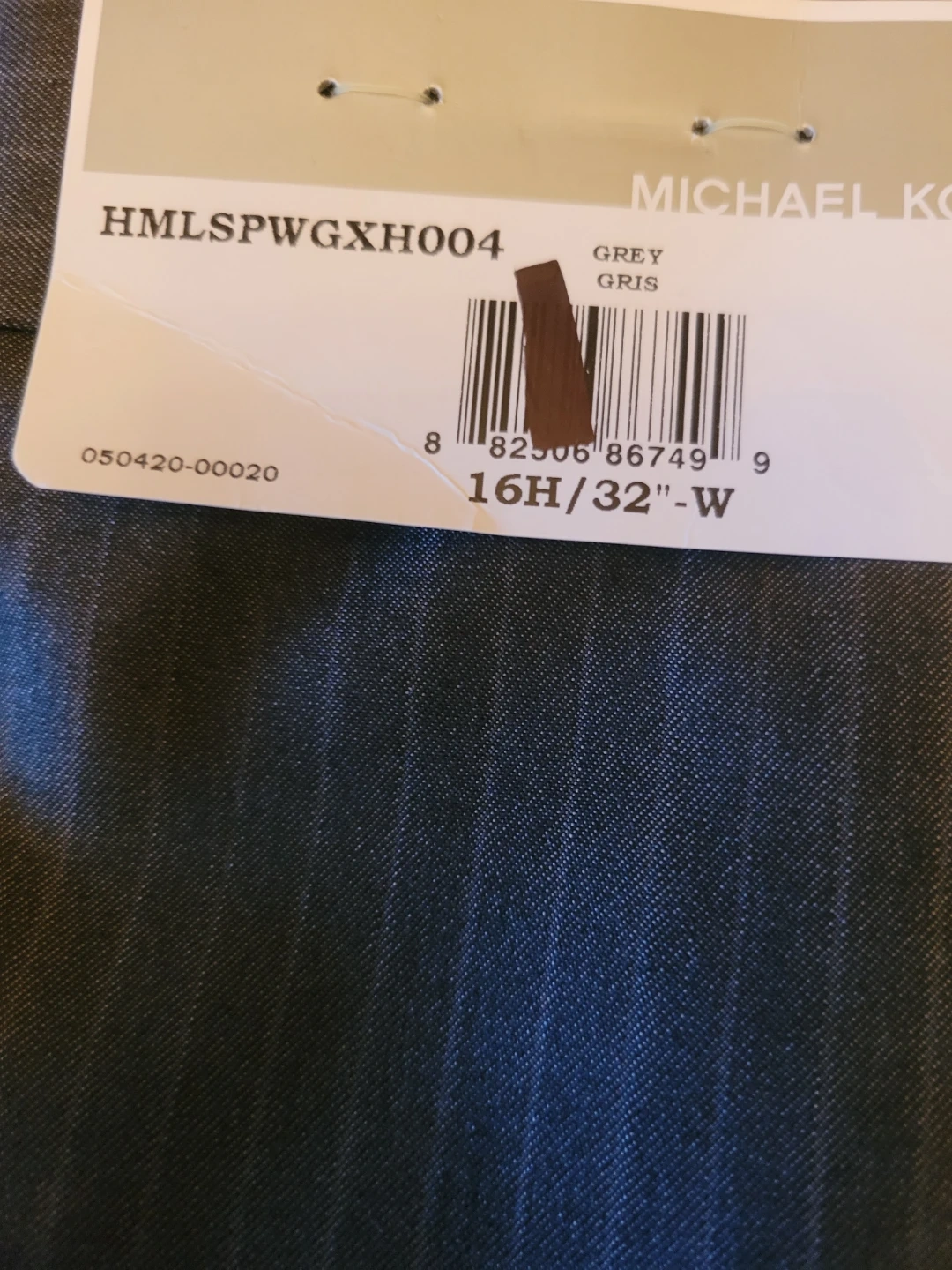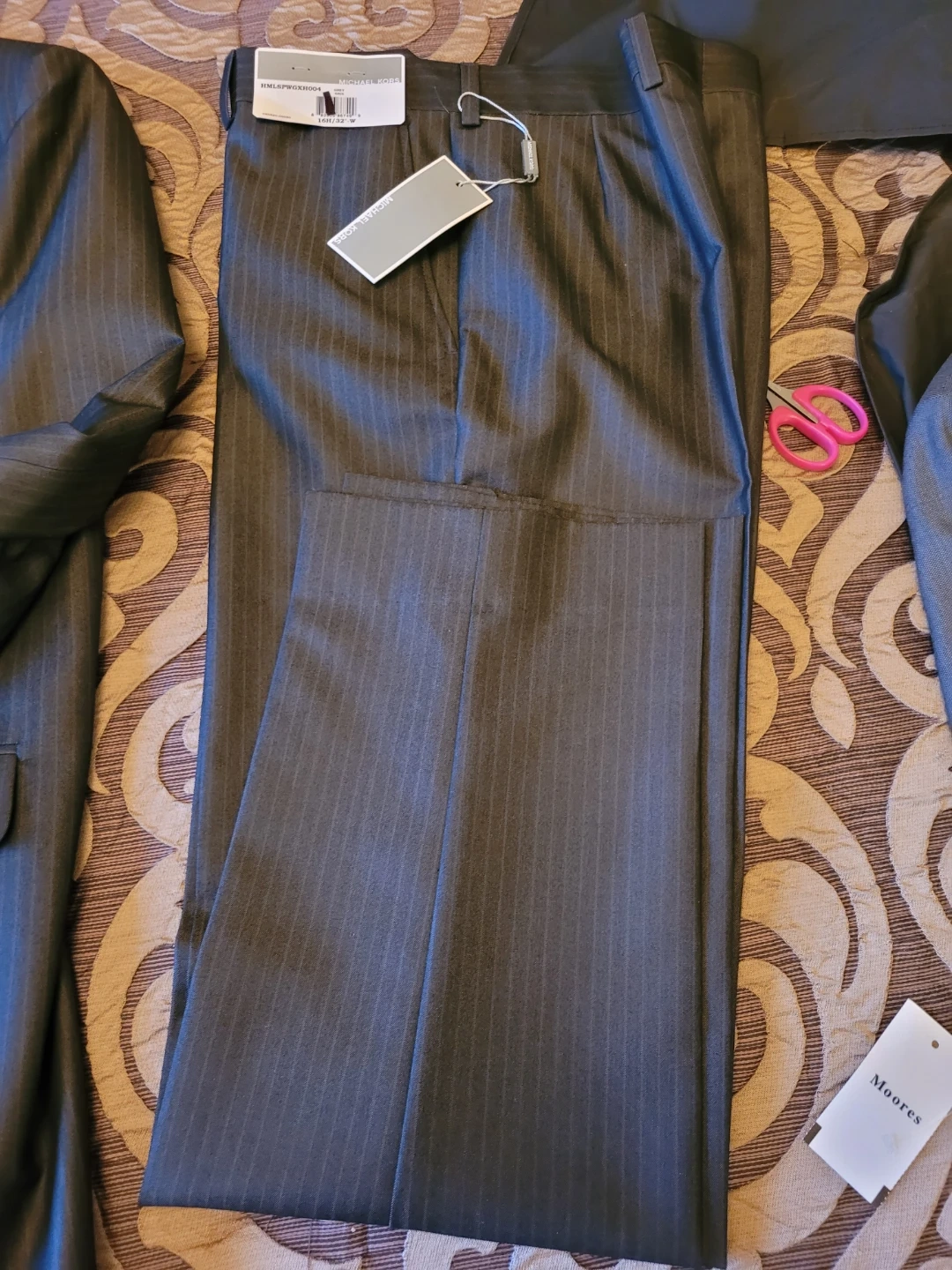 Michael Kors suit jacket and pants set. Grey pinstripe pattern. Jacket size is 30DE, which corresponds to a 12. Pants are size 16H/32"-W. Made for a sharp professional look!As new