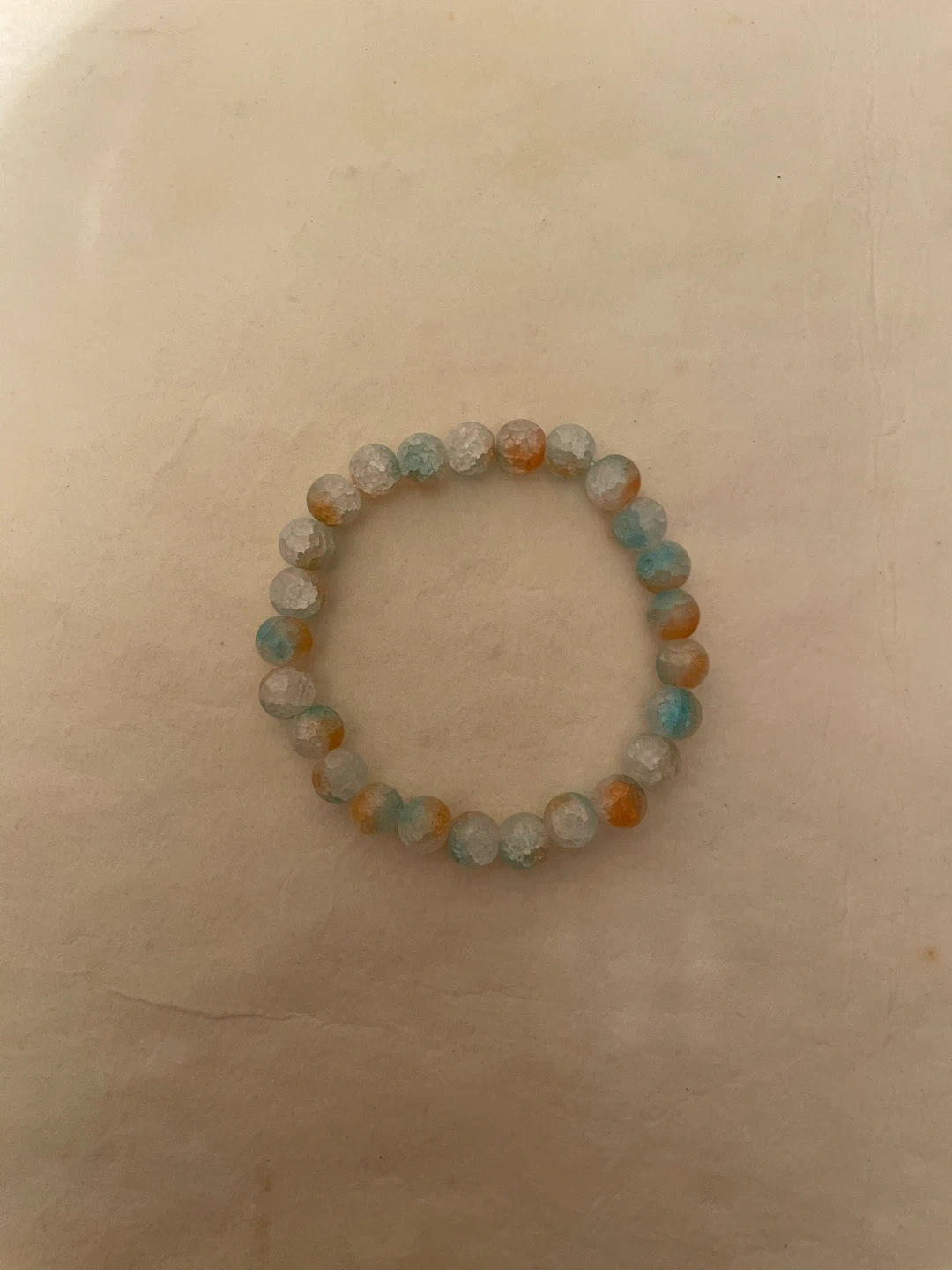 Here's a cute beaded bracelet with a mix of orange, blue, and white beads! It's in great condition and would add a pop of colour to any outfit