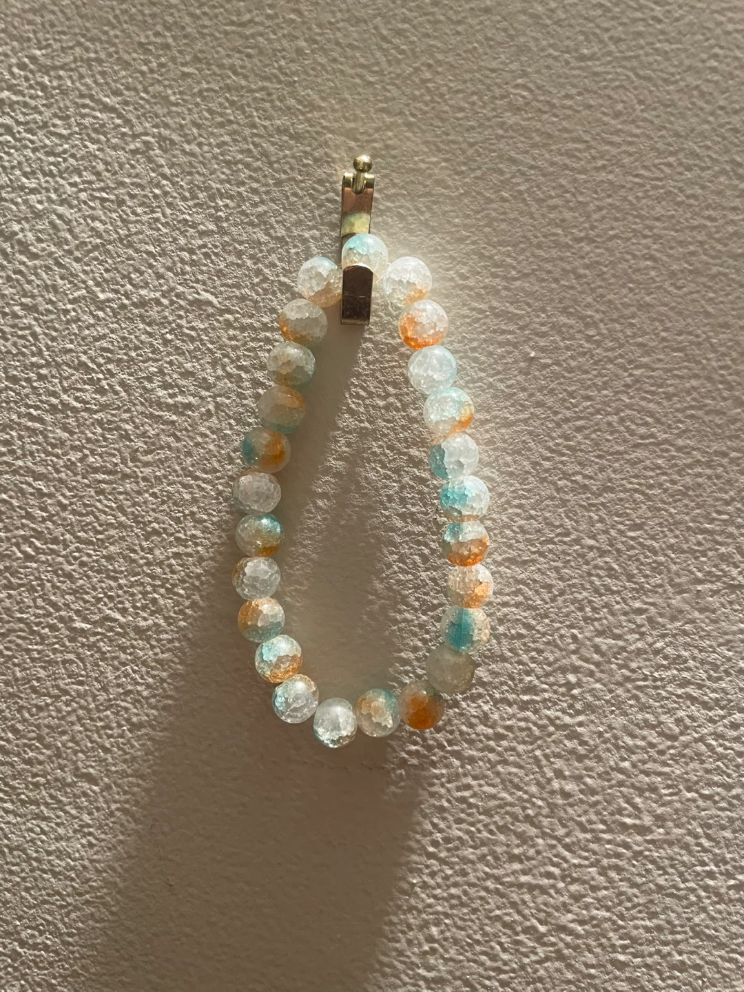 Here's a cute beaded bracelet with a mix of orange, blue, and white beads! It's in great condition and would add a pop of colour to any outfit