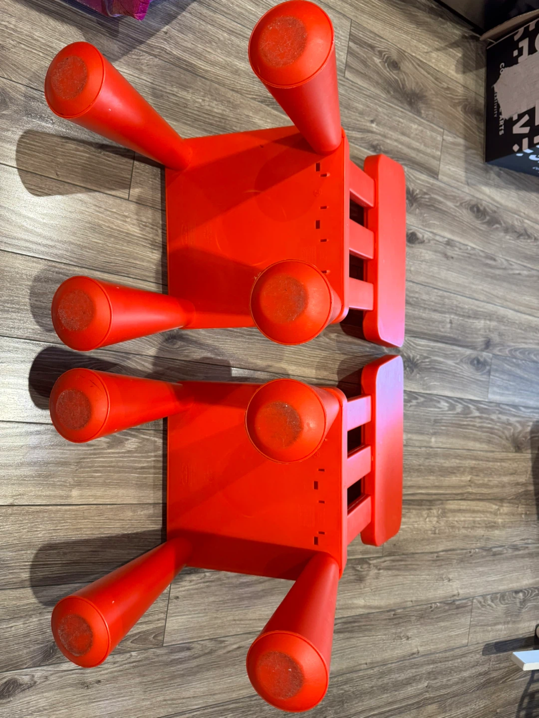 Selling a set of two IKEA Mammut children's chairs in red! These are perfect for little ones and are easy to clean. They're in good condition and ready for a new home!
