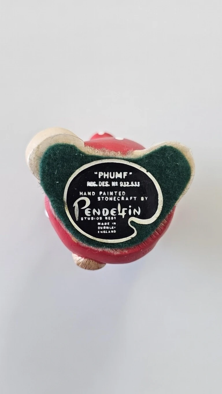 This is a Pendelfin "Phumf" figurine. It's hand-painted stonecraft by Studios Best in England. This charming bunny figure plays a little horn.