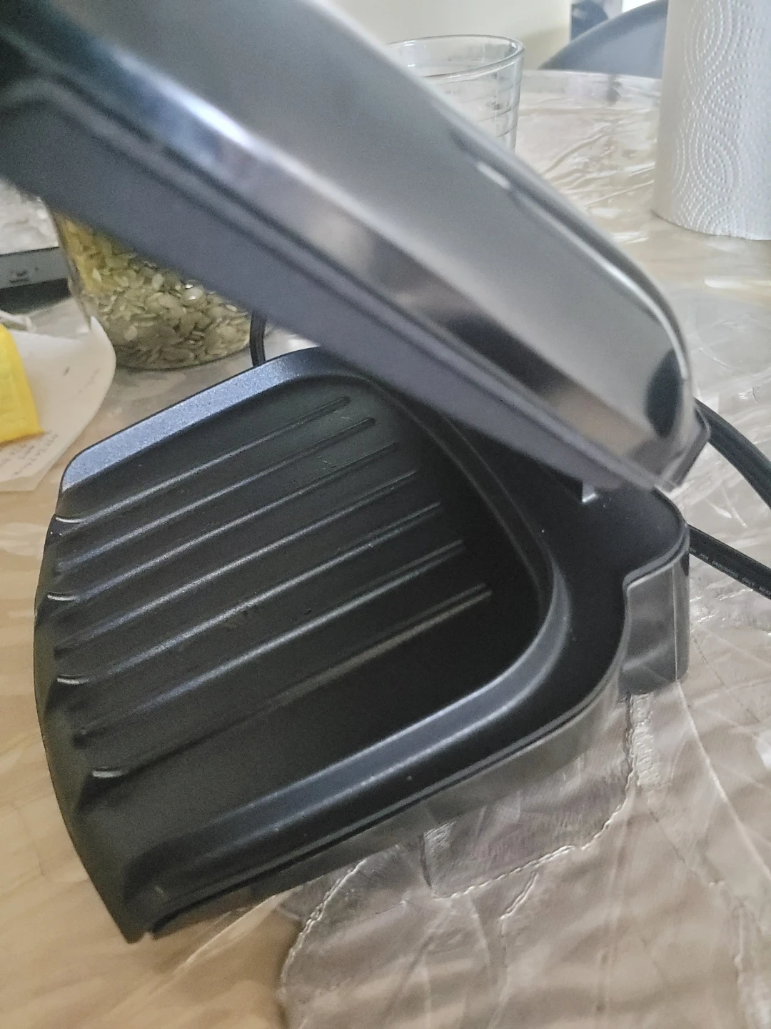 This George Foreman electric grill features a non-stick coated surface for easy cleanup. It's ideal for quick meals and everyday use. The compact design makes it convenient for small kitchens.