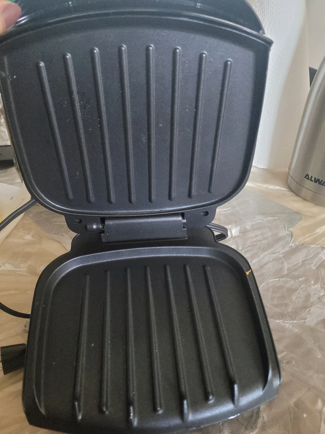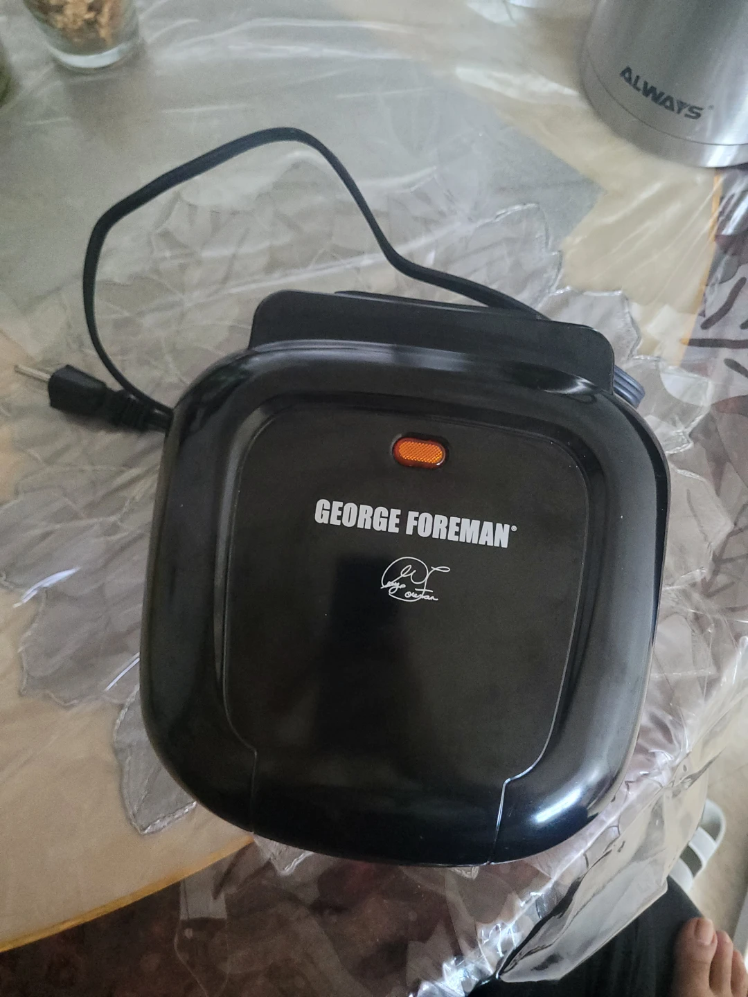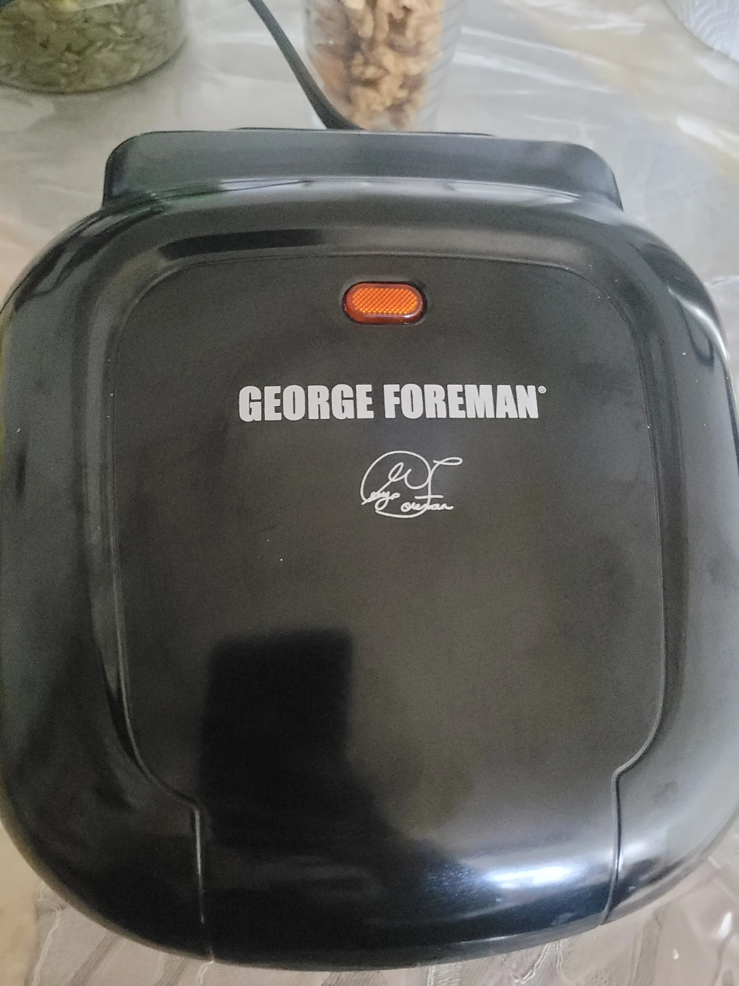 This George Foreman electric grill features a non-stick coated surface for easy cleanup. It's ideal for quick meals and everyday use. The compact design makes it convenient for small kitchens.