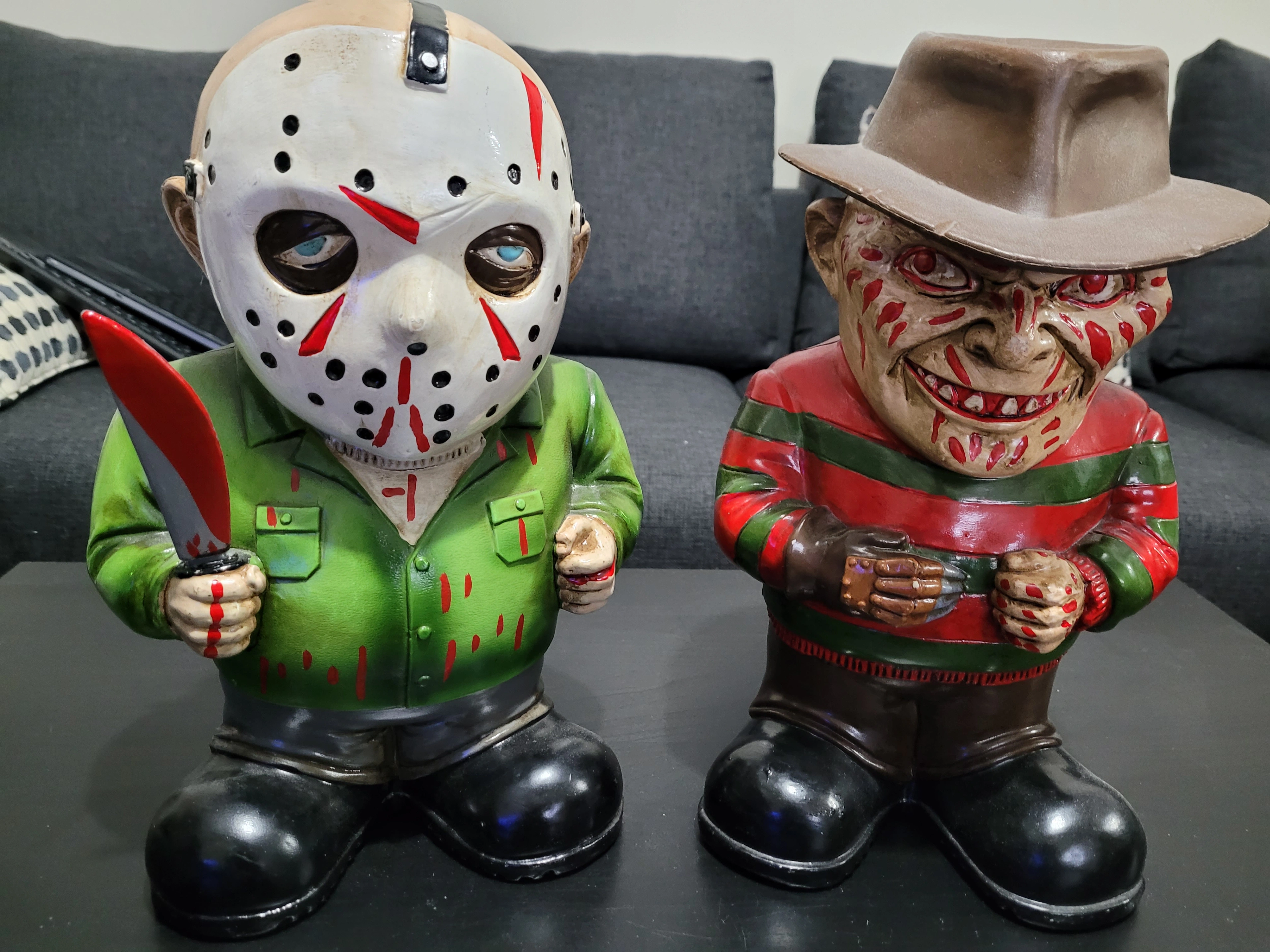 Morbid Enterprises wants to make sure that your little home garden is safe and sound from all sorts of meddling little critters. So, what better way to scare them off than have them face-to-face with Freddy Krueger and Jason Voorhees lawn gnomes!