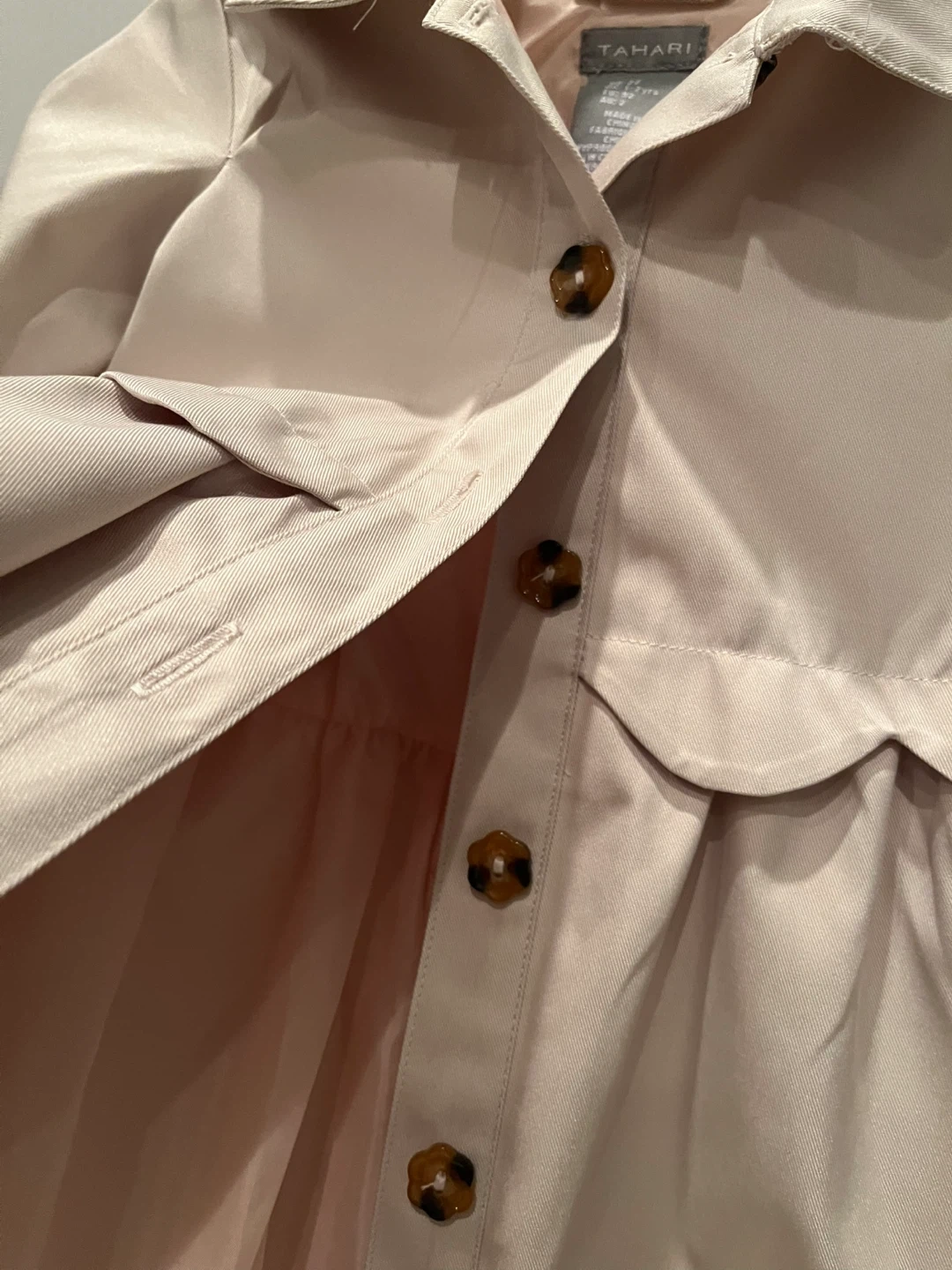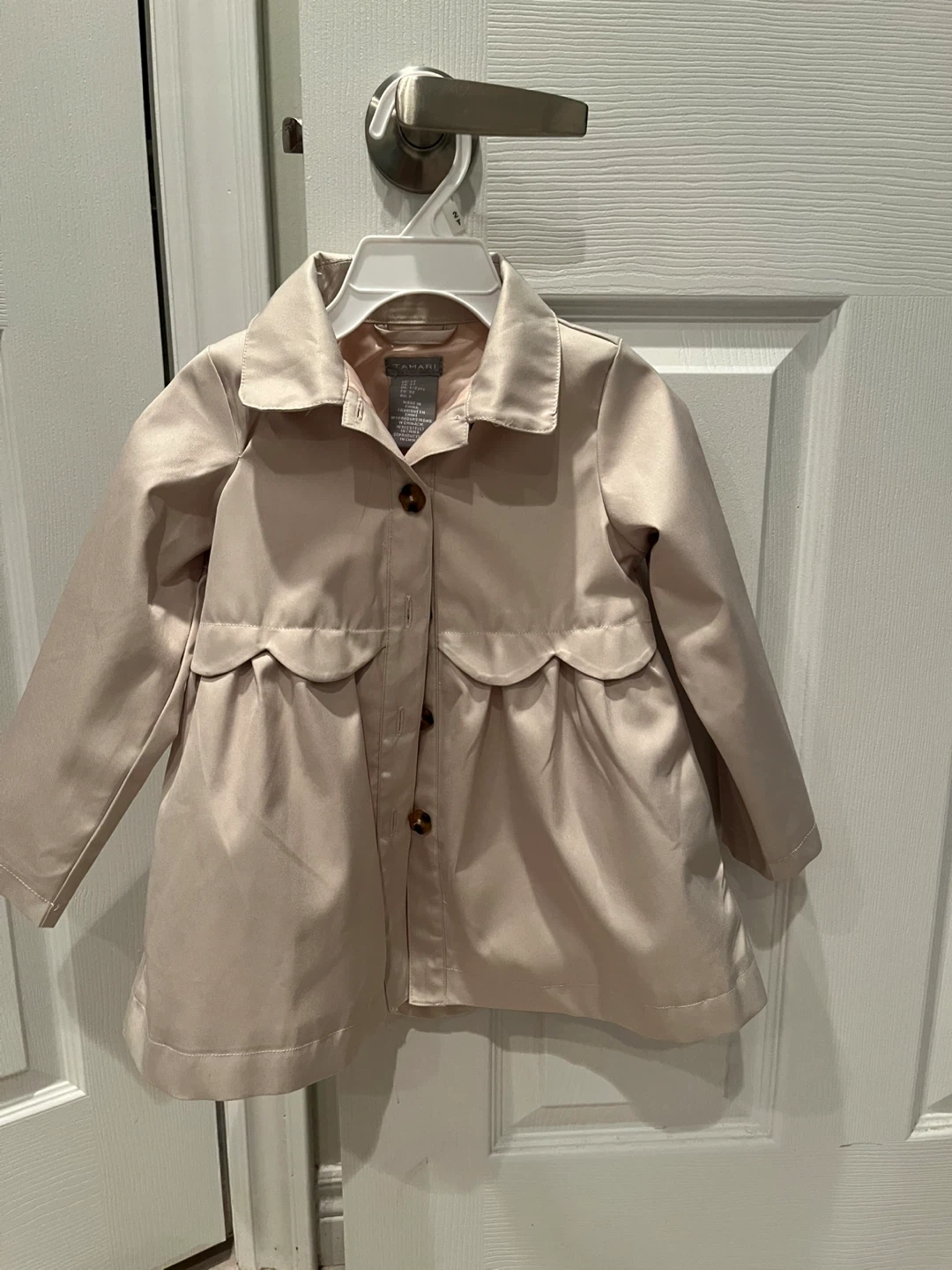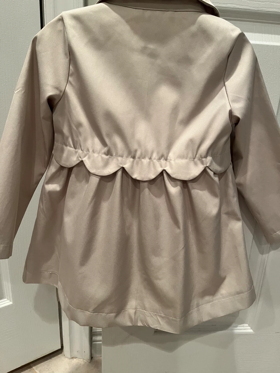 A cute Tahari trench coat for girls in size 2T! This stylish coat is in excellent condition and features a classic design with a button-up front. Beautiful details in the design and buttons