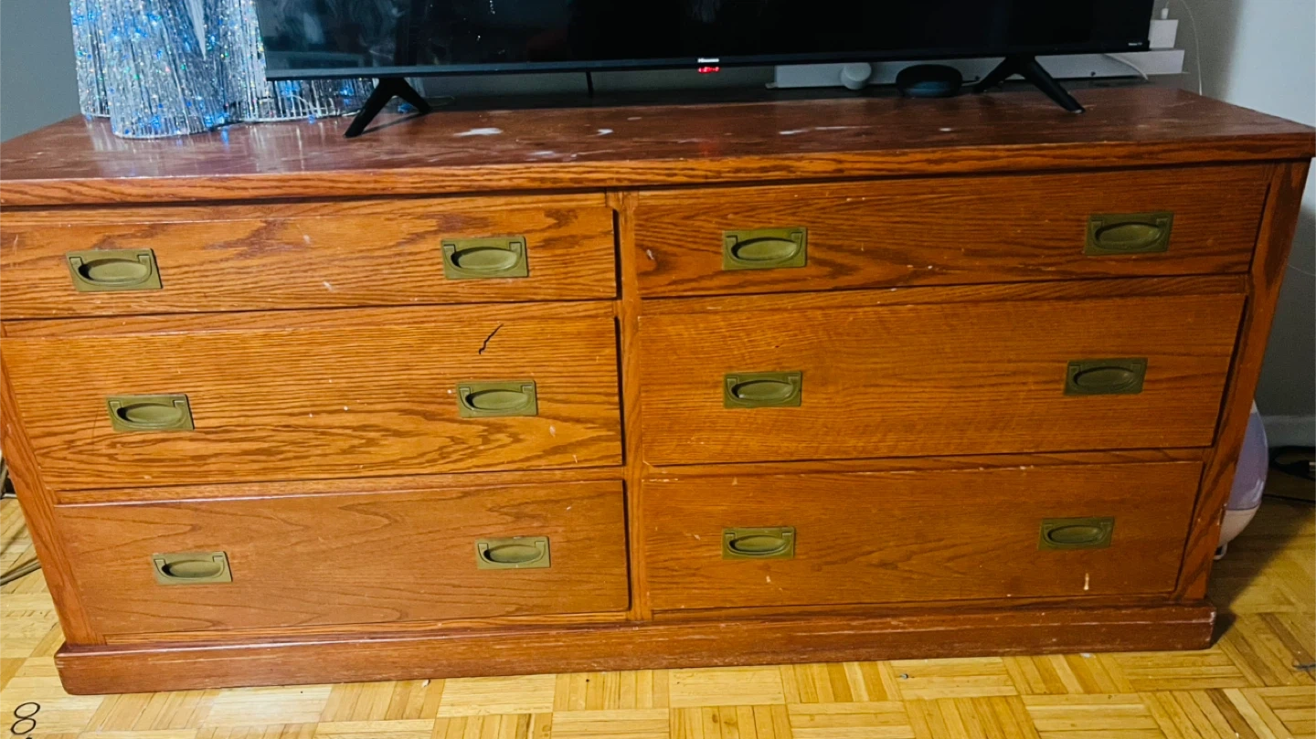 Here's a wooden dresser with six drawers! It has a classic look and would be great for adding storage to a bedroom or any other room in the house. Minor wear and tear scratches on the top