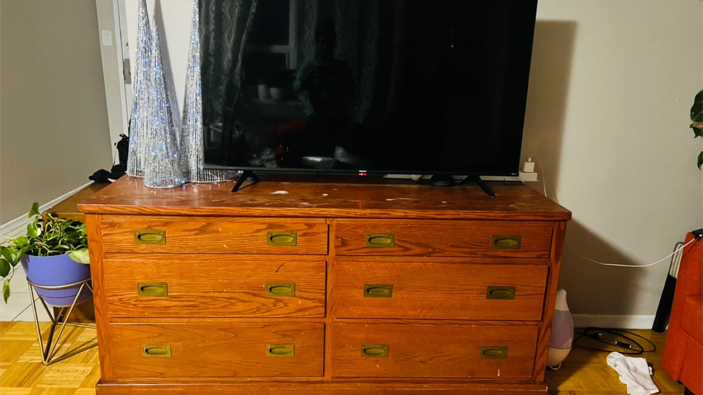 Here's a wooden dresser with six drawers! It has a classic look and would be great for adding storage to a bedroom or any other room in the house. Minor wear and tear scratches on the top