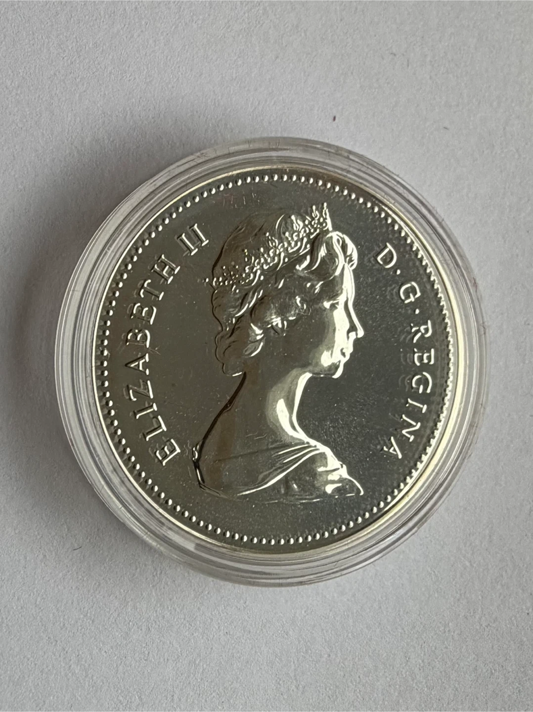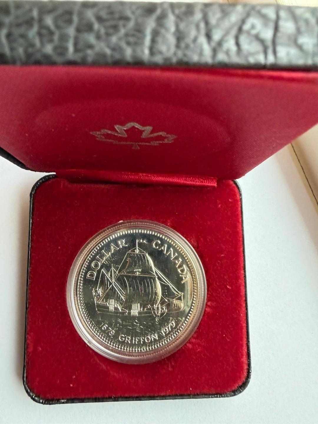 Selling a 1979 Canadian silver dollar coin featuring The Griffon ship. It's in great condition and comes in its original case. A nice addition to any coin collection!