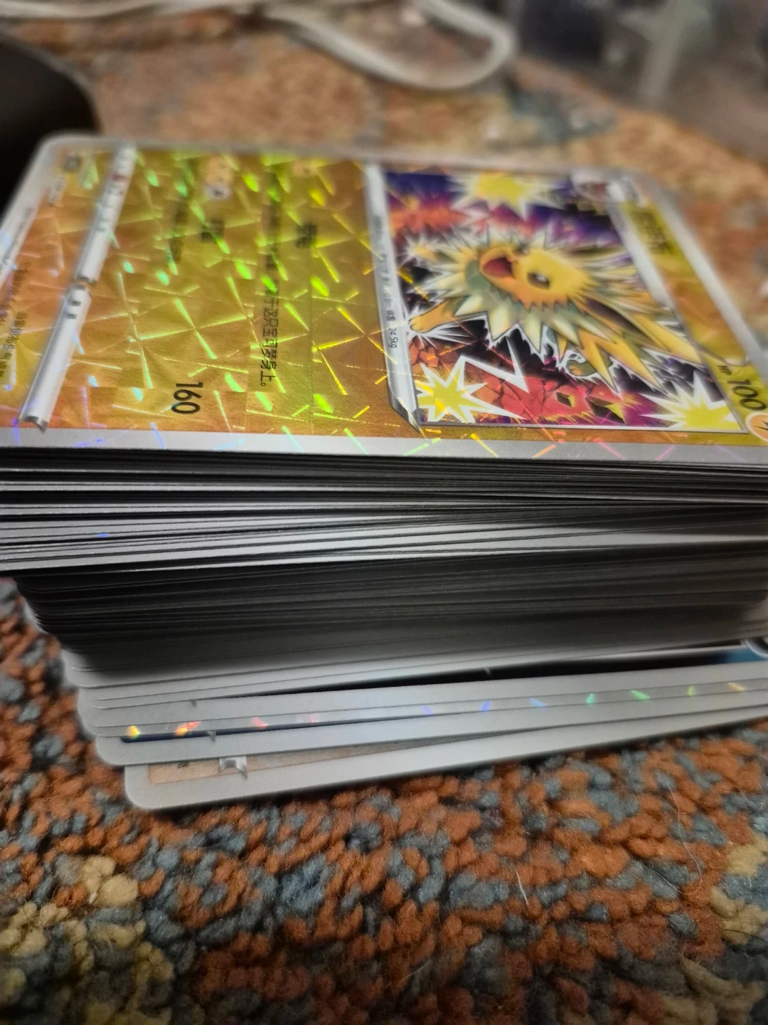 Collection of various Pokemon trading cards featuring Eevee and other characters. Includes several holofoil and holographic cards in good condition.