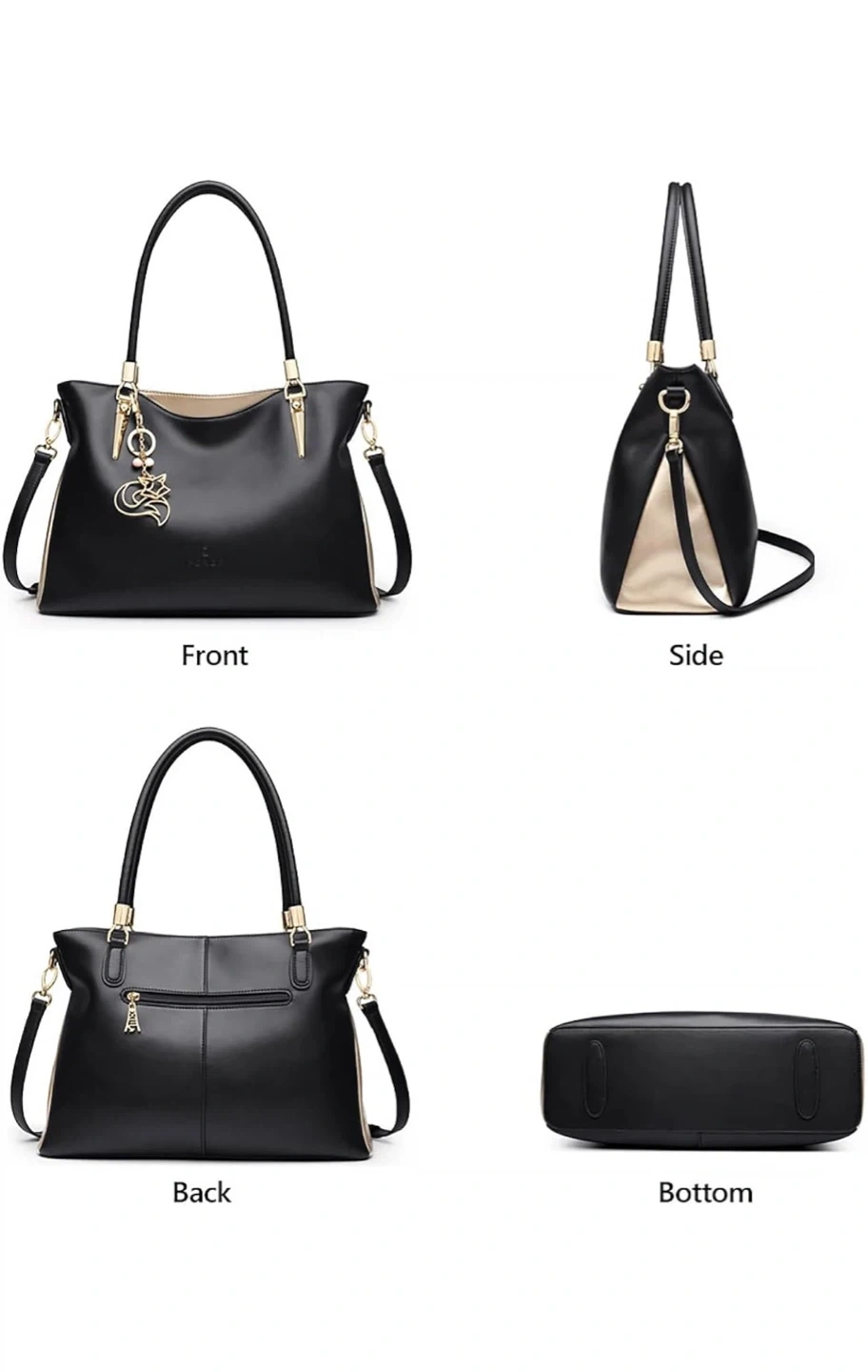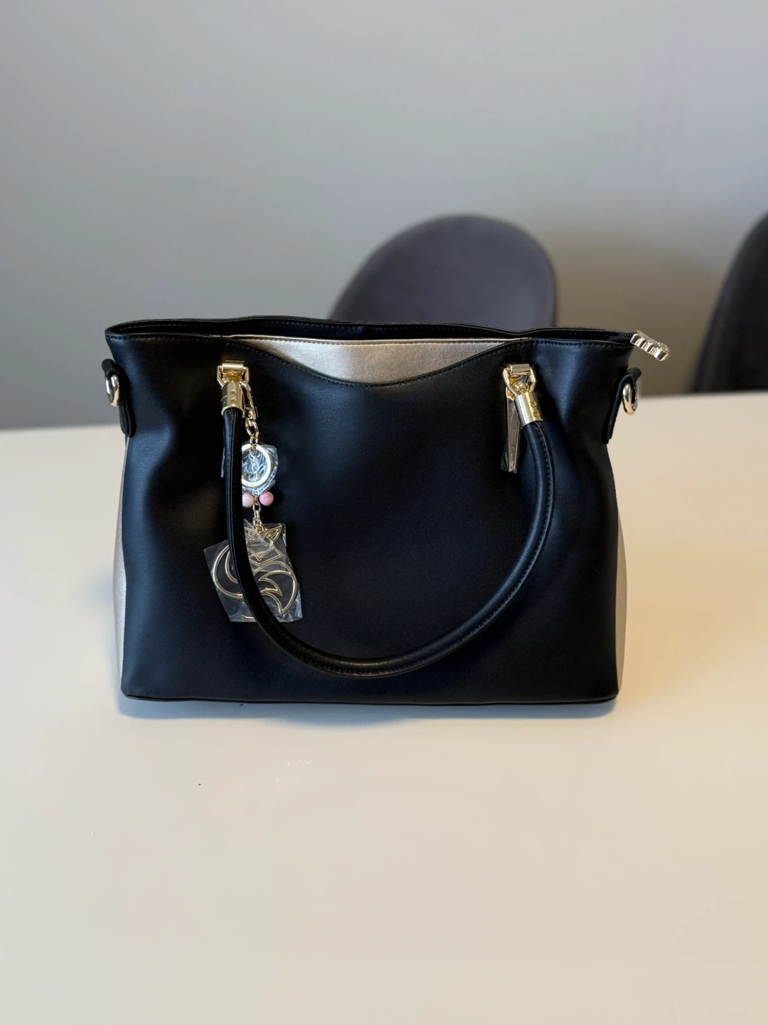 Black Tote Handbag with Charm
