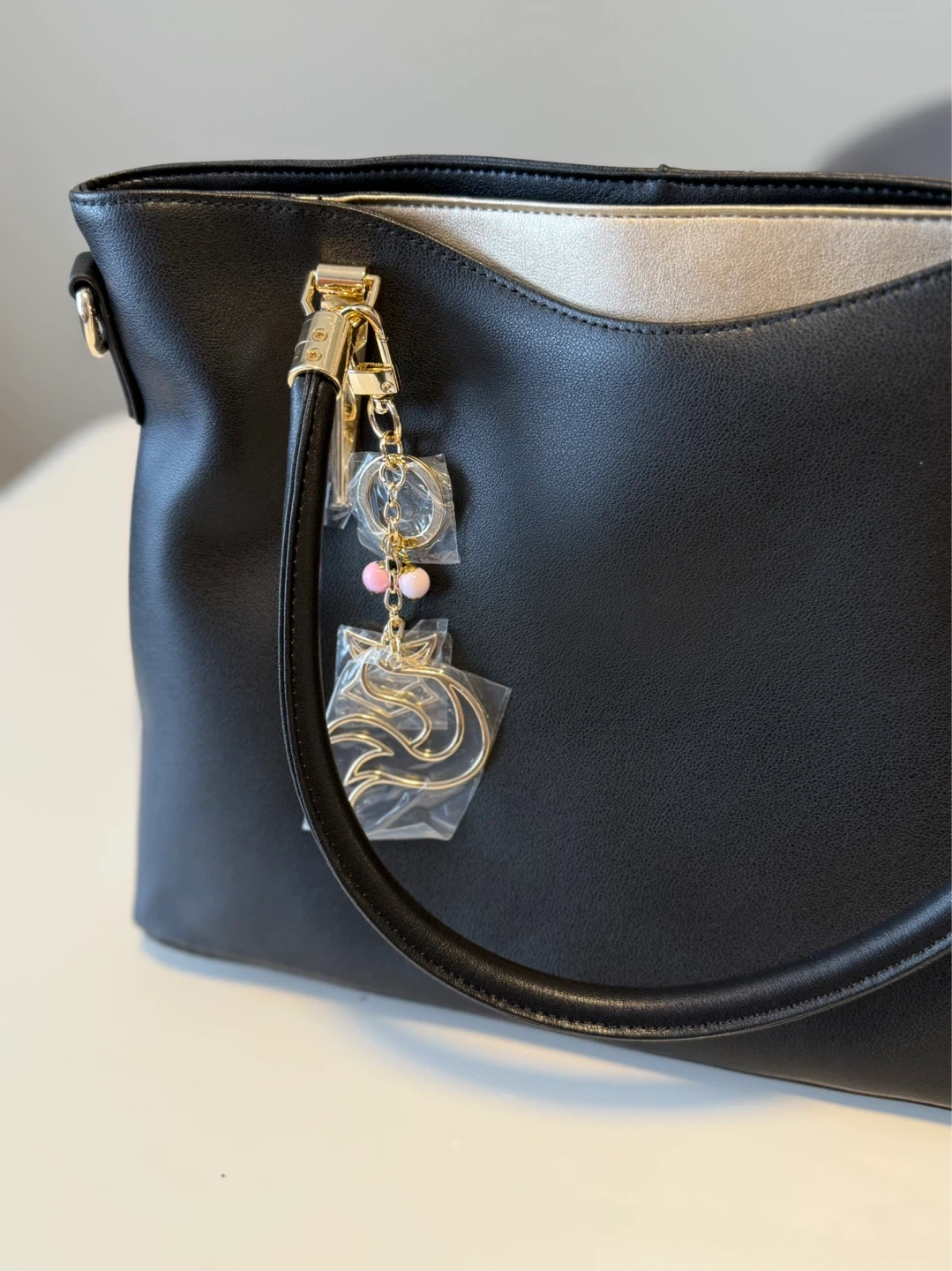 Black Tote Handbag with Charm